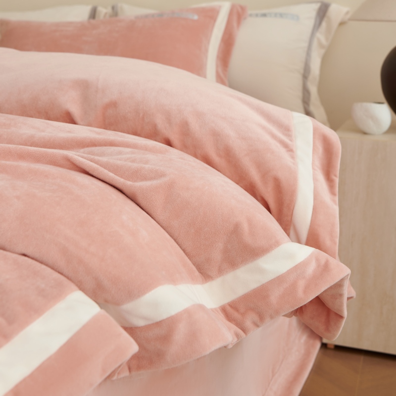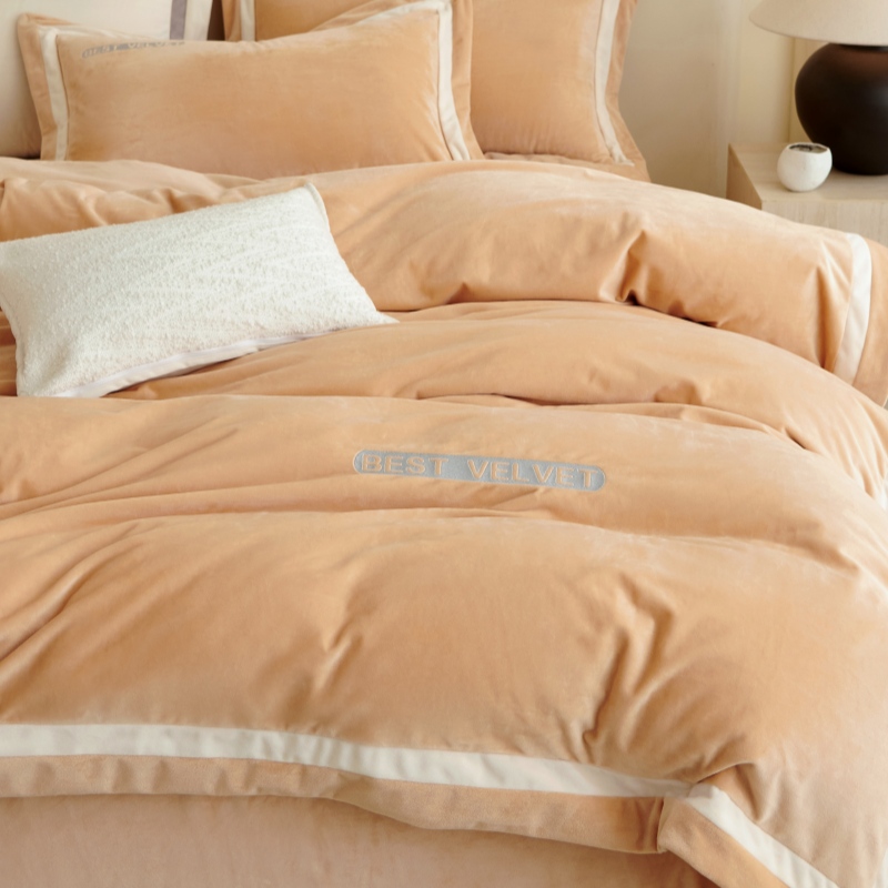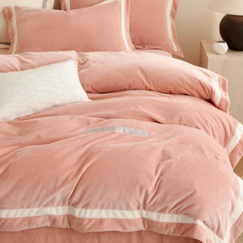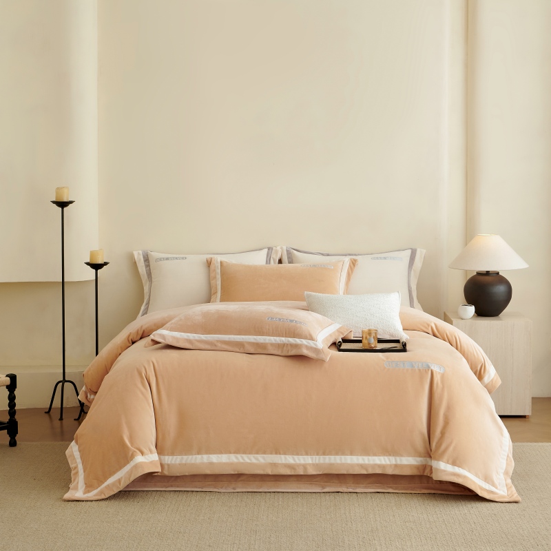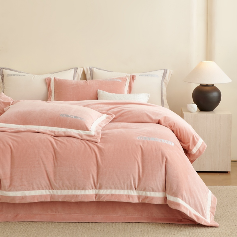 (总)淼铭家纺 2025秋冬新款婴肤绒双拼绣花四件套-雅韵系列,雅韵白,雅韵粉,雅韵灰,雅韵驼,雅韵紫
