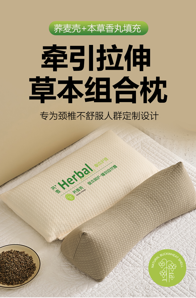 商品名称:乐可 2025新款草本组合枕荞麦枕本草香丸合香枕枕头枕芯 草本组合枕-咖色