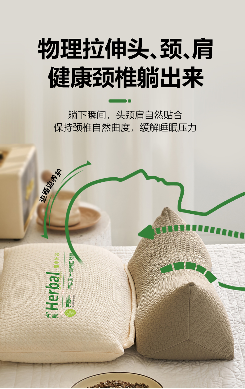 (总)乐可 2025新款分区两用牵引枕全棉双向枕 枕头枕芯,分区两用牵引枕