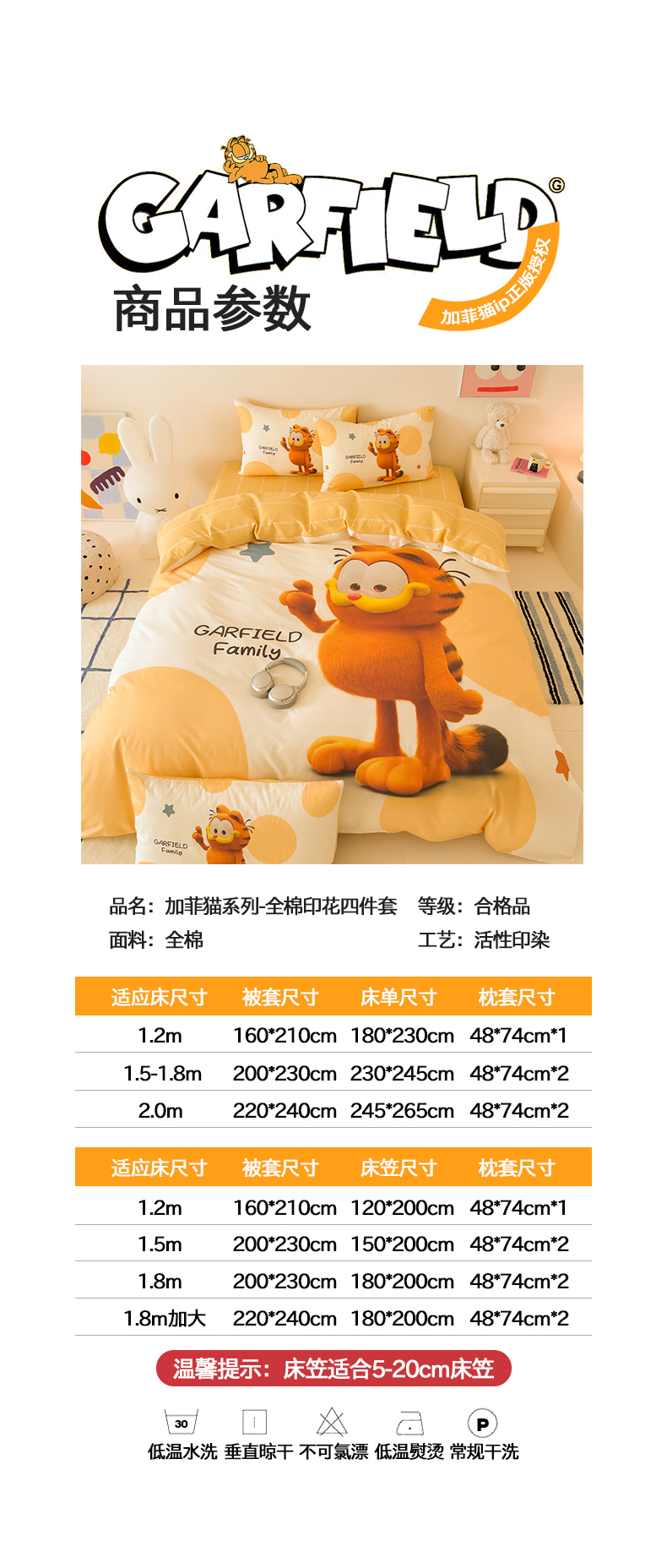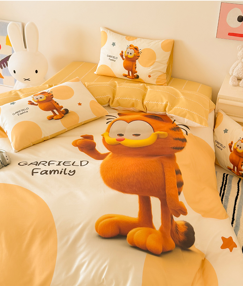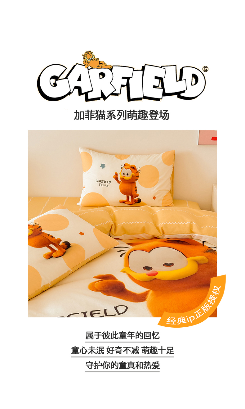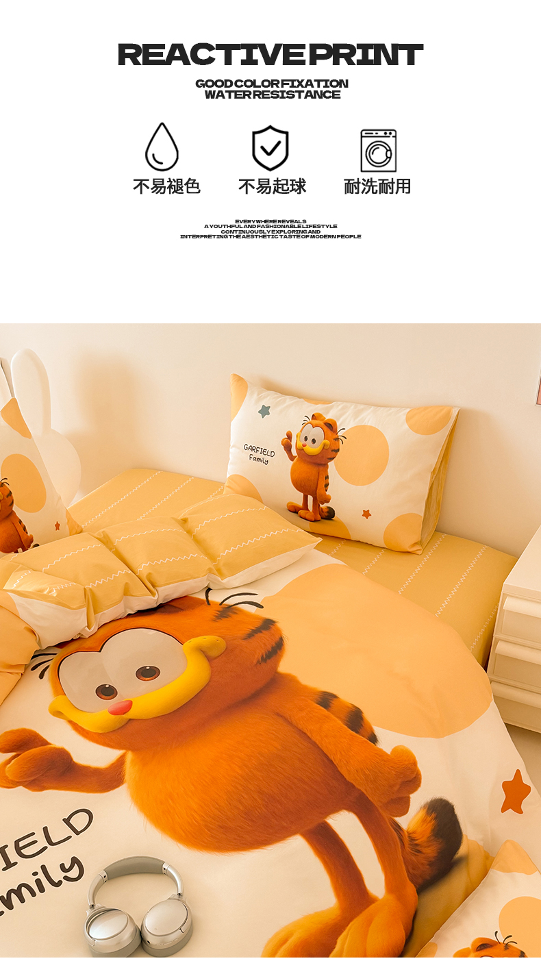 当前位置: 91家纺网 > 商品网购 > 床品套件 > 四件套 > 全棉普通四件套 > 锦彩家居 2025新款全棉数码印花卡通四件套-加菲猫系列 圆点加菲