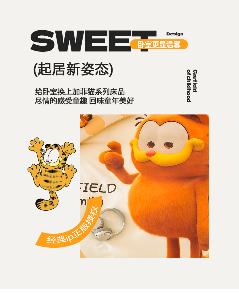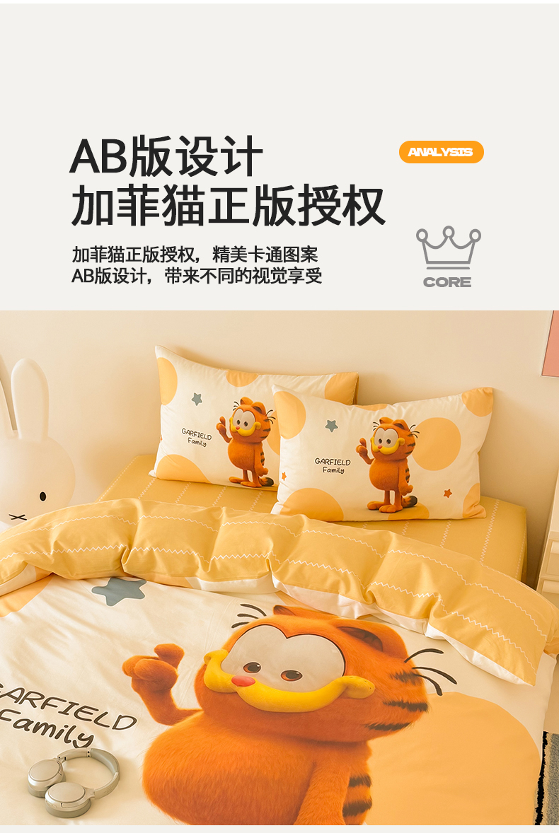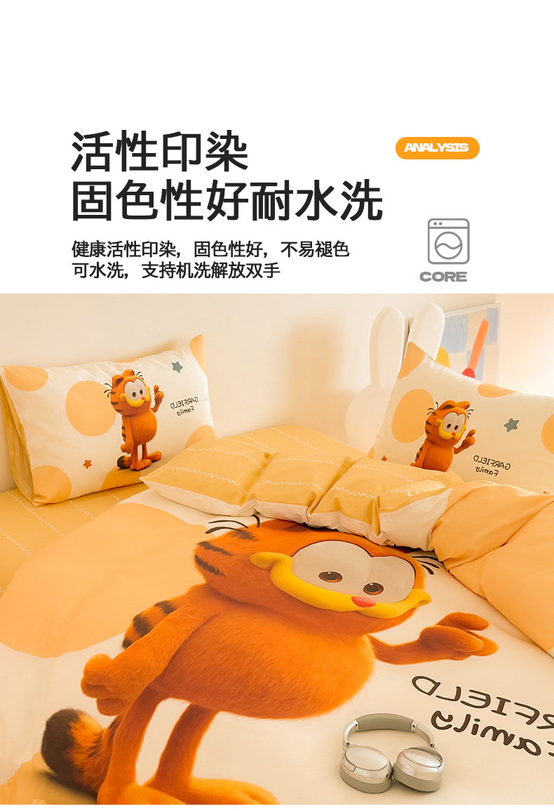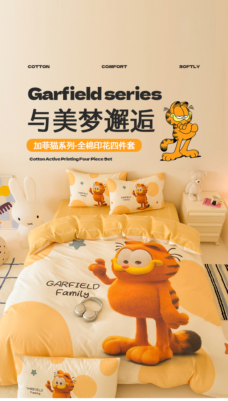 当前位置: 91家纺网 > 商品网购 > 床品套件 > 四件套 > 全棉普通四件套 > 锦彩家居 2025新款全棉数码印花卡通四件套-加菲猫系列 圆点加菲