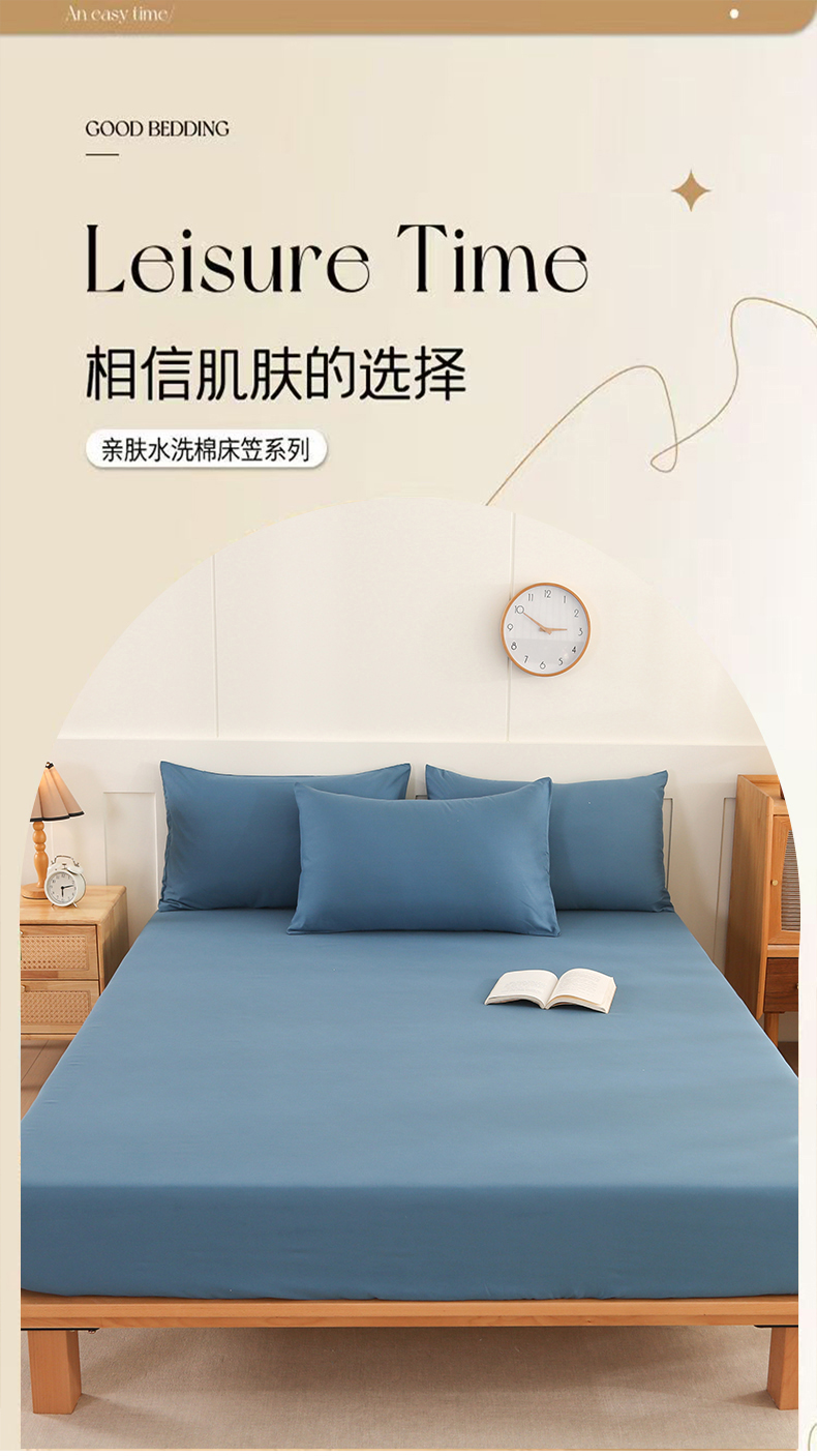 (总)优纤家纺 2025新款亲肤水洗棉床笠系列,卡其,纯白,豆沙,墨绿,牛仔蓝,浅灰,深灰,天蓝