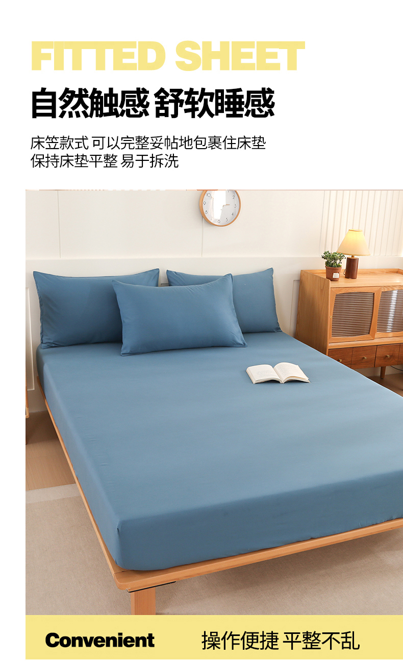 • 91家纺网 家纺一手货源 找家纺 优纤家纺 2025新款亲肤水洗棉床笠系列 天蓝