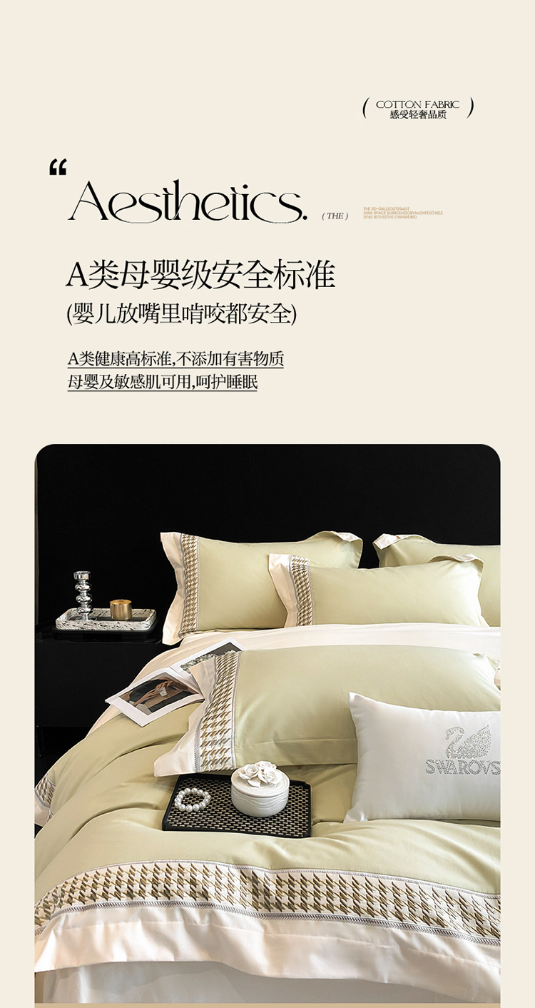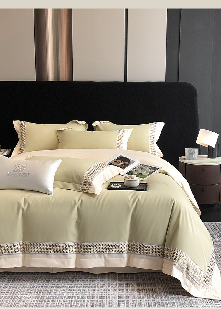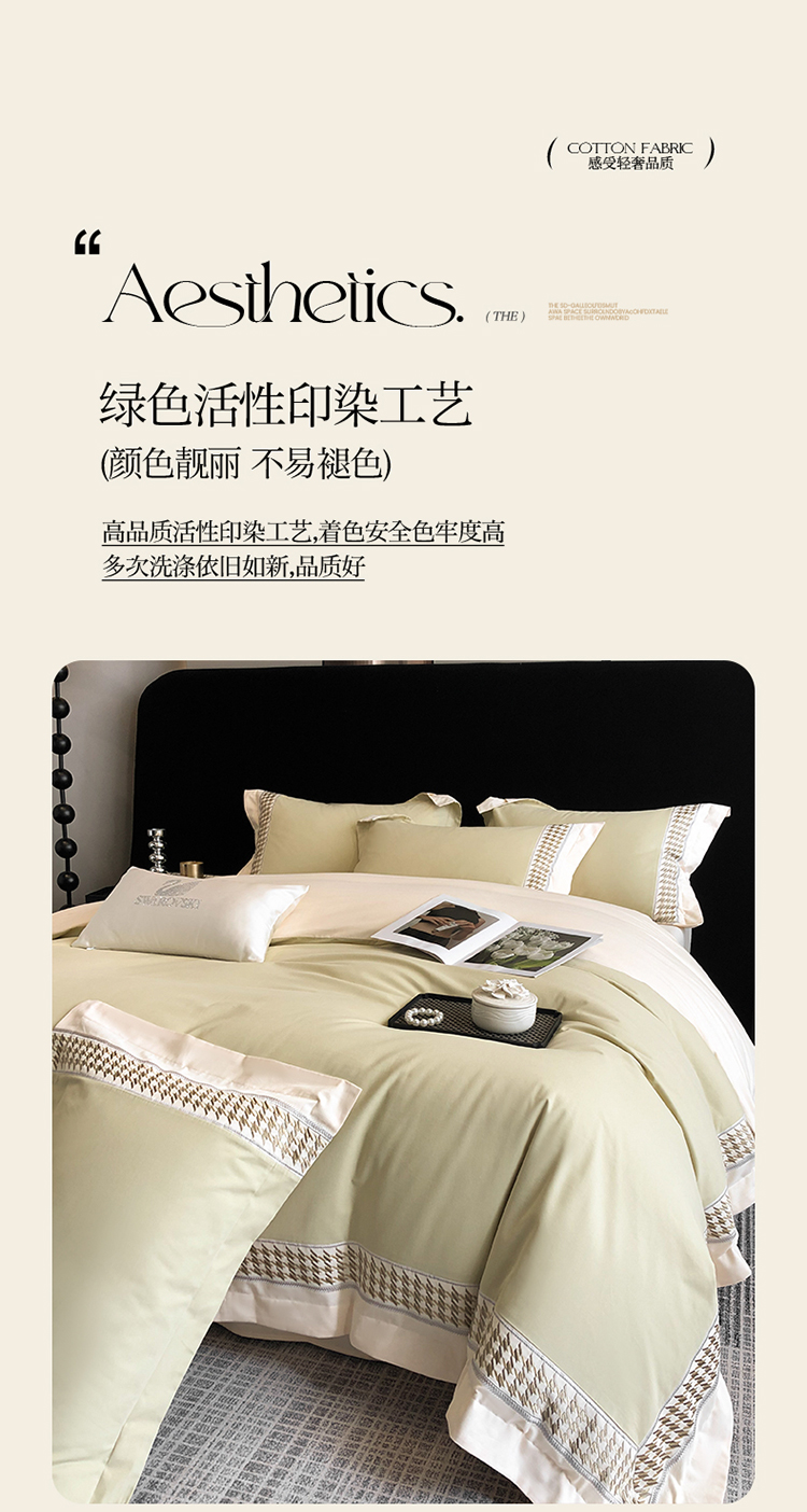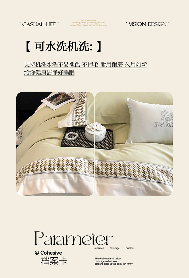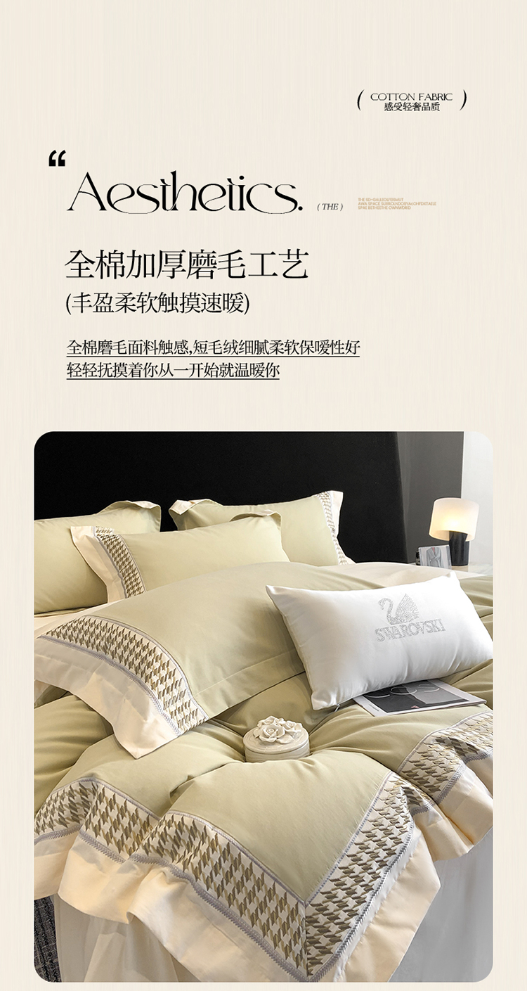 当前位置: 91家纺网 > 商品网购 > 床品套件 > 四件套 > 贡缎全棉四件套 > (可开发票)高档礼盒装超柔超细旦50S长绒棉磨毛刺绣四件套全棉100%纯棉秋冬加厚床品 曙光金-千鸟格-A类超细旦超柔长绒棉