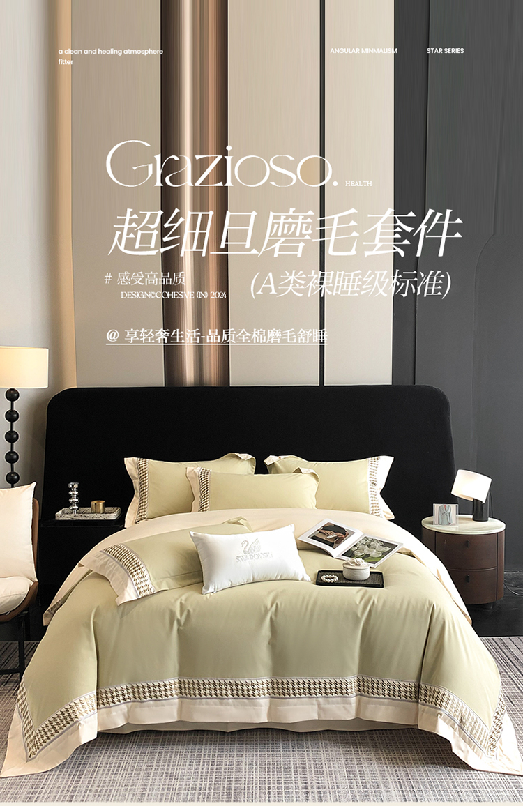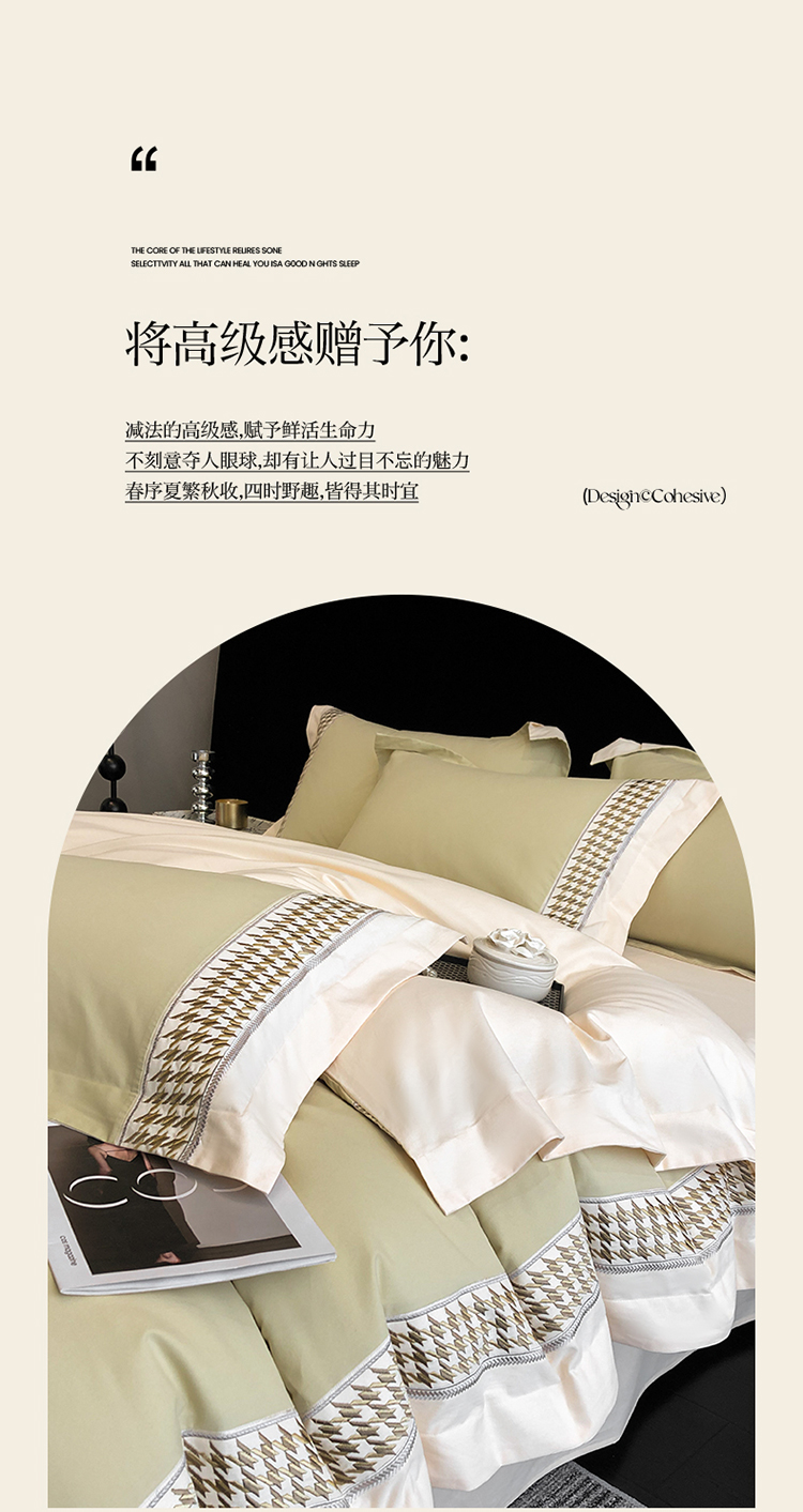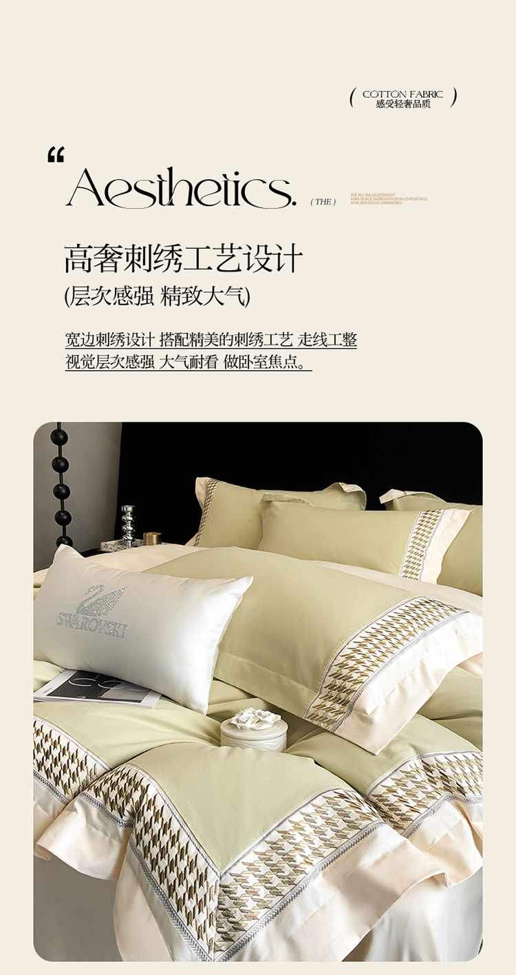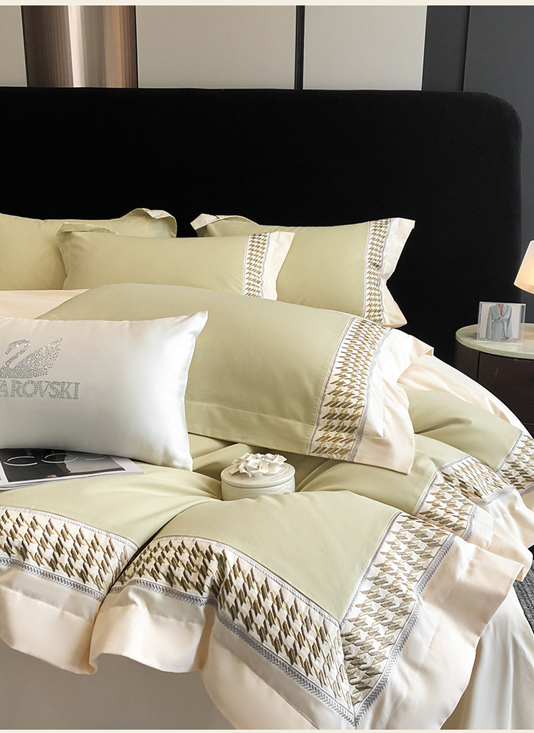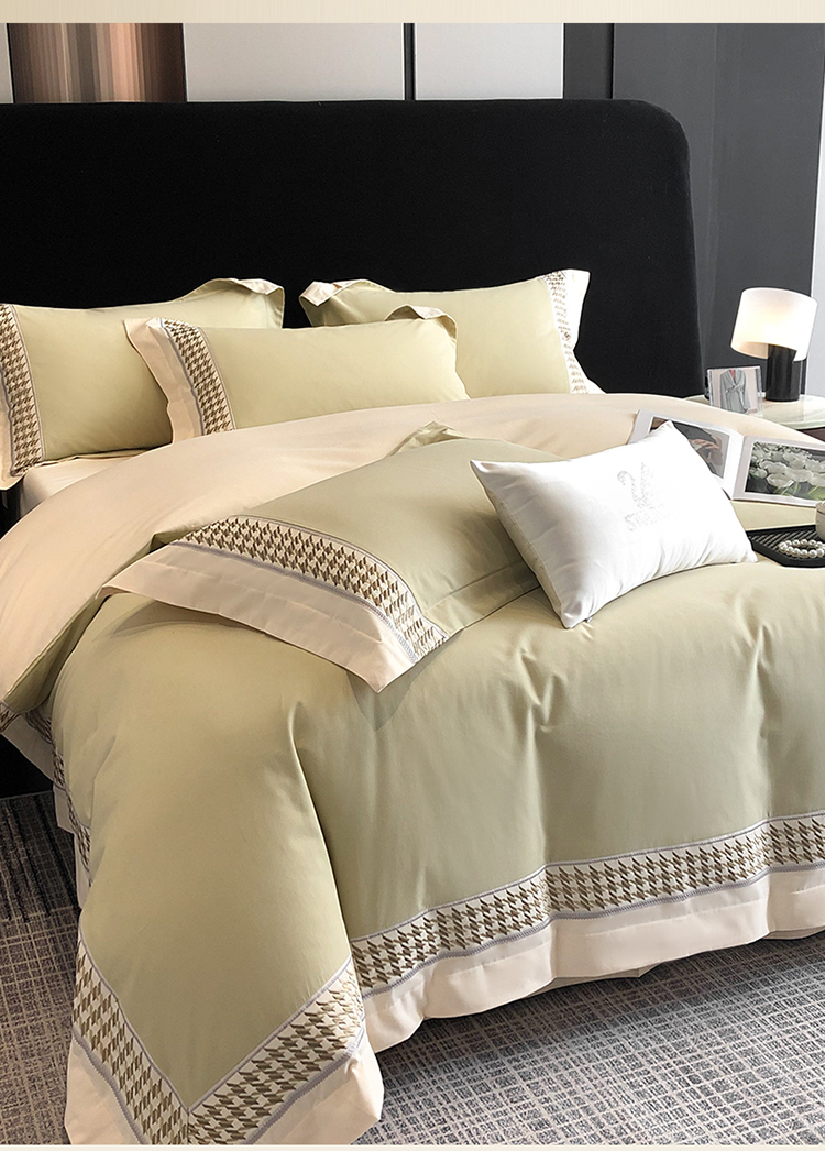 当前位置: 91家纺网 > 商品网购 > 床品套件 > 四件套 > 贡缎全棉四件套 > (可开发票)高档礼盒装超柔超细旦50S长绒棉磨毛刺绣四件套全棉100%纯棉秋冬加厚床品 曙光金-千鸟格-A类超细旦超柔长绒棉