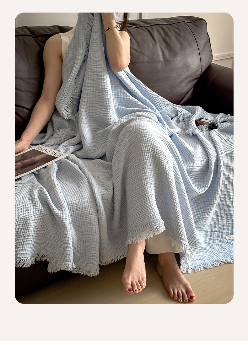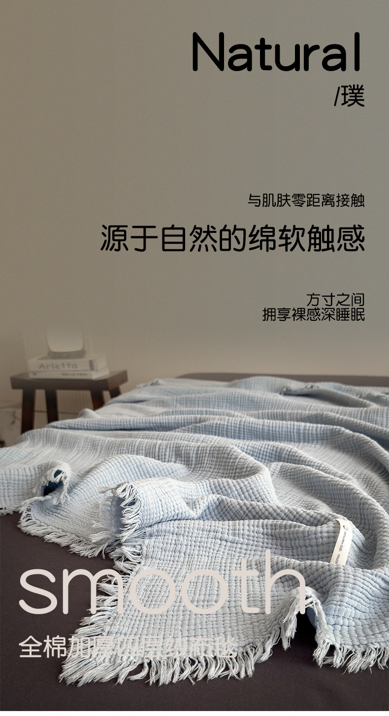 兄弟坊 2026新款美拉德全棉夏被纱布毯空调毯飞机毯 雅居-星空蓝