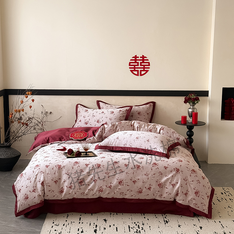 商品名称:(总)Mr.pig猪先生水洗棉 2025新款色织提花婚庆四件套-良缘(控价:标准款不能低于408元)