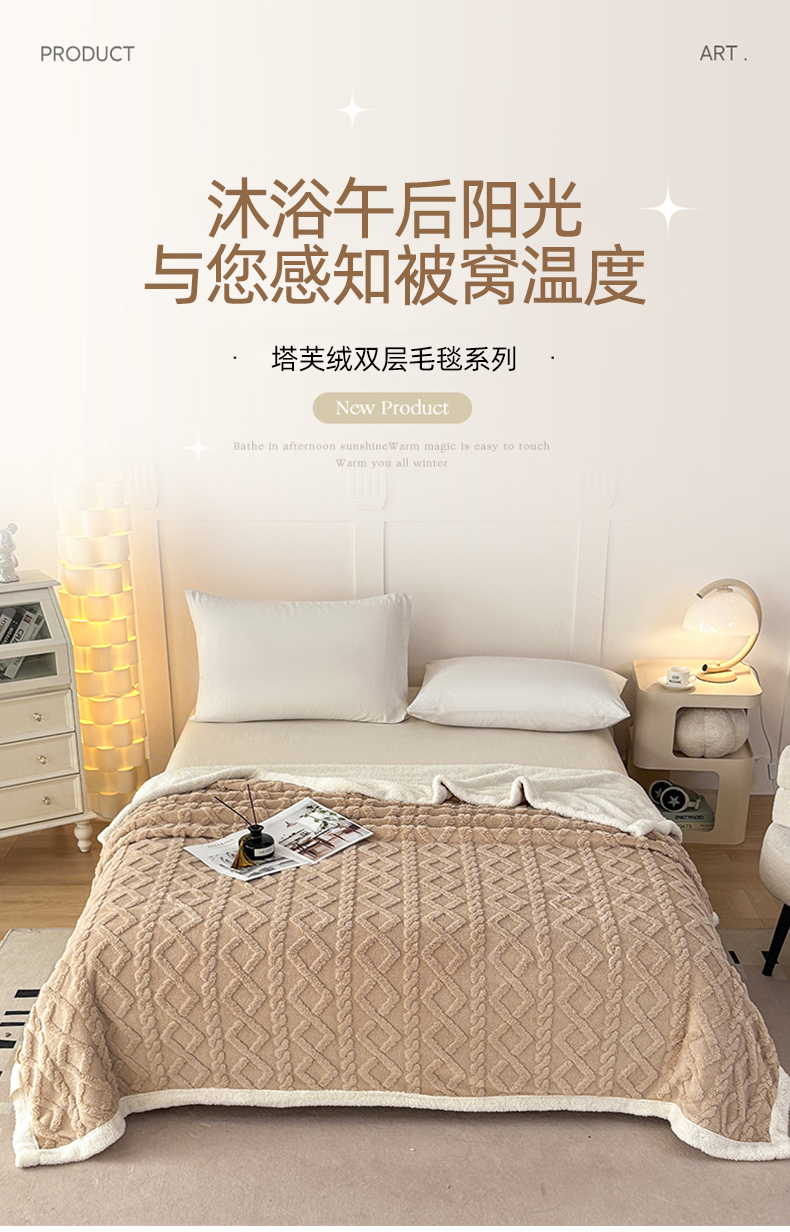 (总)云尚床笠 2025新款提花大包边AB版塔芙绒羊羔绒毯子舒棉绒四季毛毯毯子,卡其色,粉红色,嫩黄色,草绿色,咖啡色,淡紫色,深灰色,米白色,浅灰色