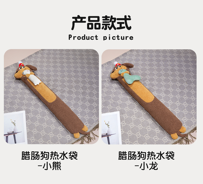 商品名称:(总)仟亿莱 2025新款抱娃腊肠狗注水长条热水袋