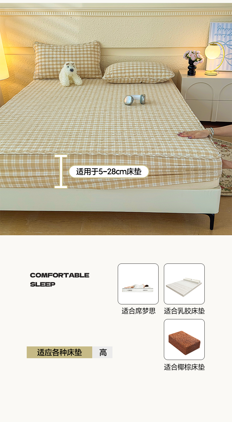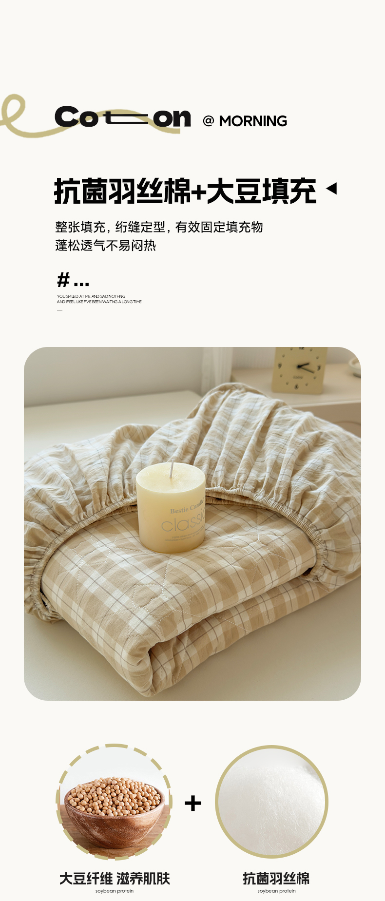 佳笠家居 2025新款A类全棉色织水洗棉大豆棉夹棉床笠-半糖系列 半糖-卡其