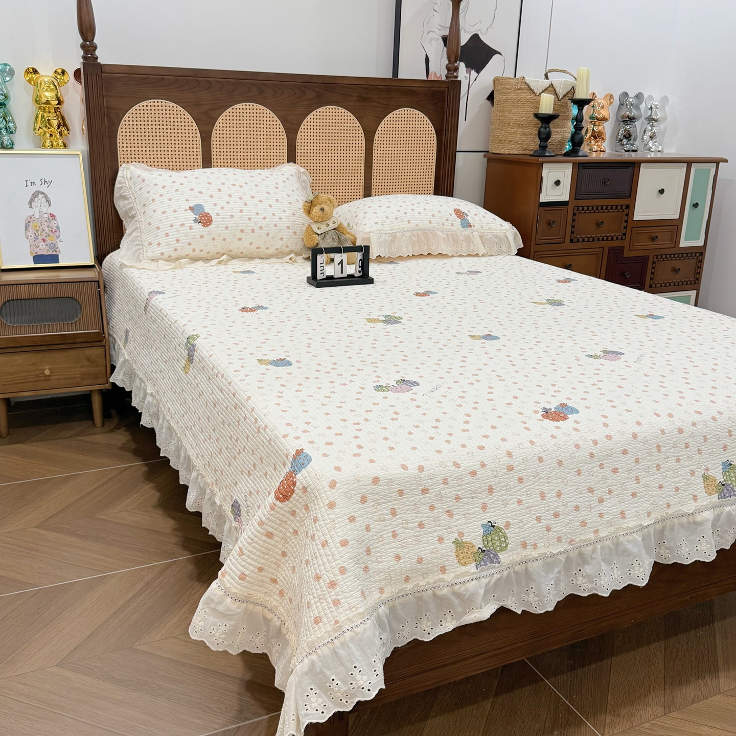 床盖工厂店 2025新款法式双面全面填充棉花床盖三件套 甜糯软糖