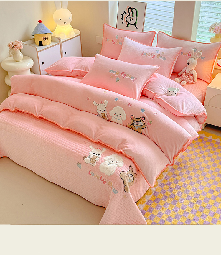 苏米娜家纺2025新款230g全消光大版卡通牛奶绒兔毛贴布绣花四件套可爱卡通男孩女孩法莱绒被套三件套 好伙伴