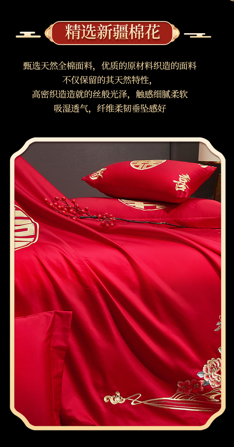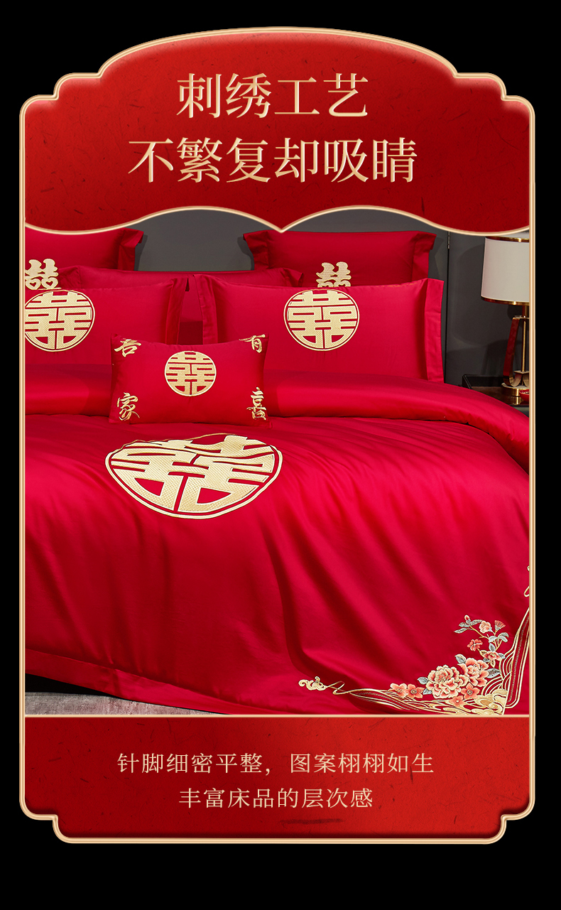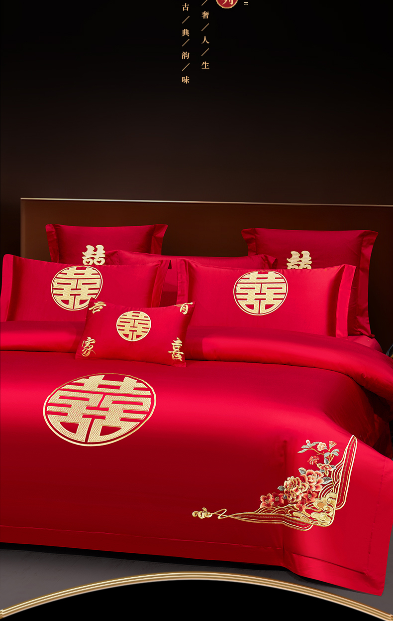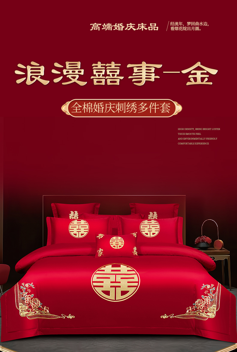 当前位置: 91家纺网 > 商品网购 > 床品套件 > 四件套 > 婚庆四件套 > 浩情国际婚庆供货中心 2026新款100%全棉长绒棉纯棉婚庆四件套结婚刺绣六件套多件套长期供货 浪漫囍事-金