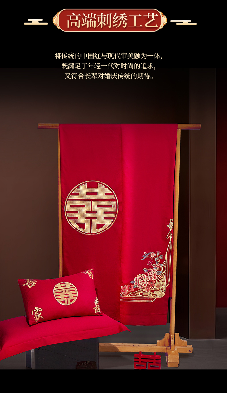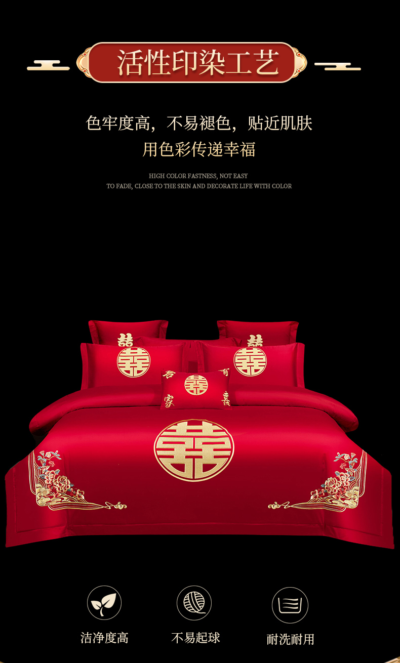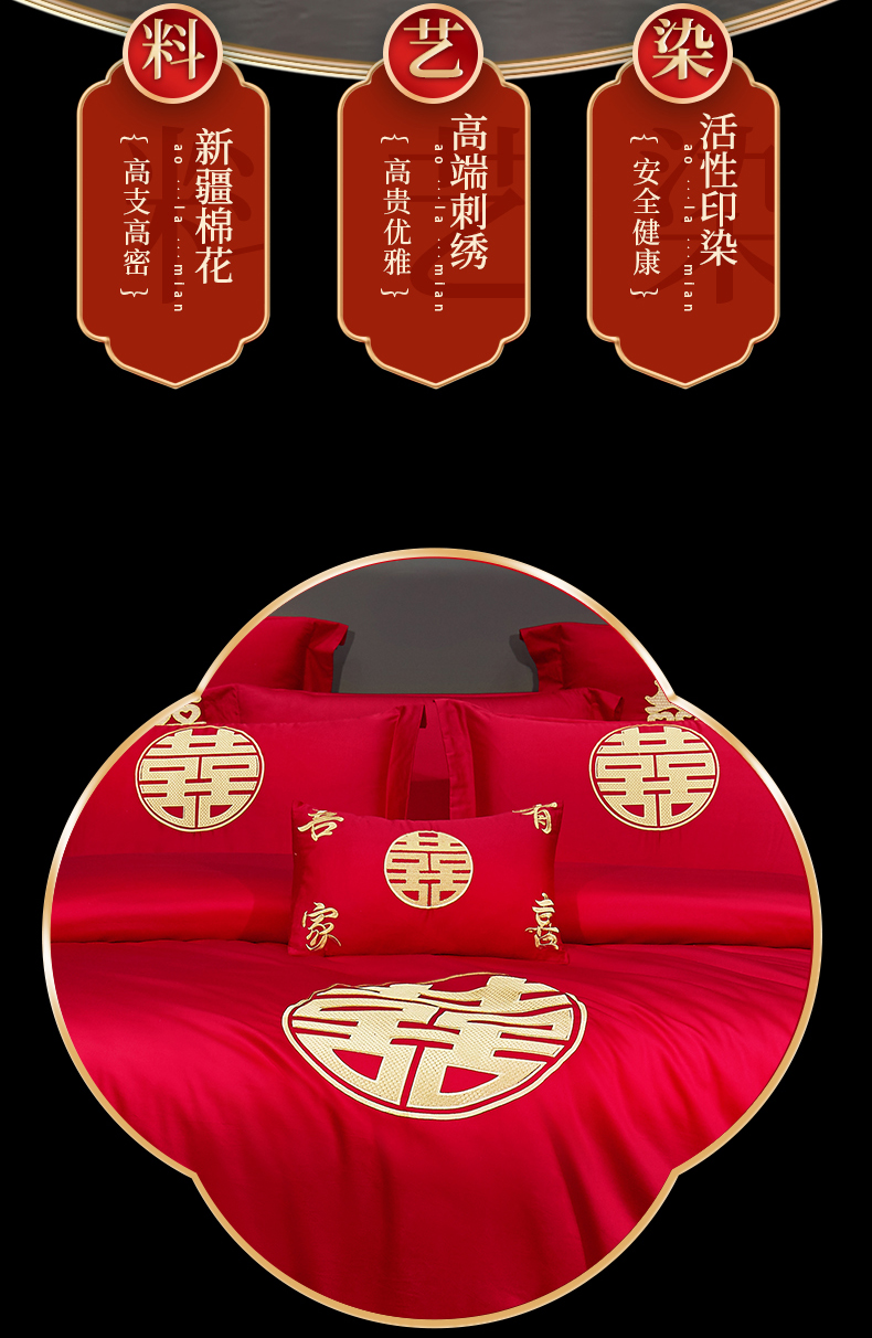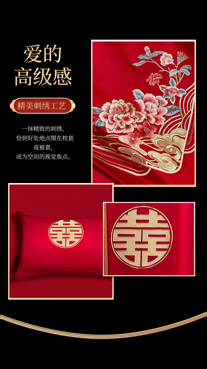 当前位置: 91家纺网 > 商品网购 > 床品套件 > 四件套 > 婚庆四件套 > 浩情国际婚庆供货中心 2026新款100%全棉长绒棉纯棉婚庆四件套结婚刺绣六件套多件套长期供货 浪漫囍事-金