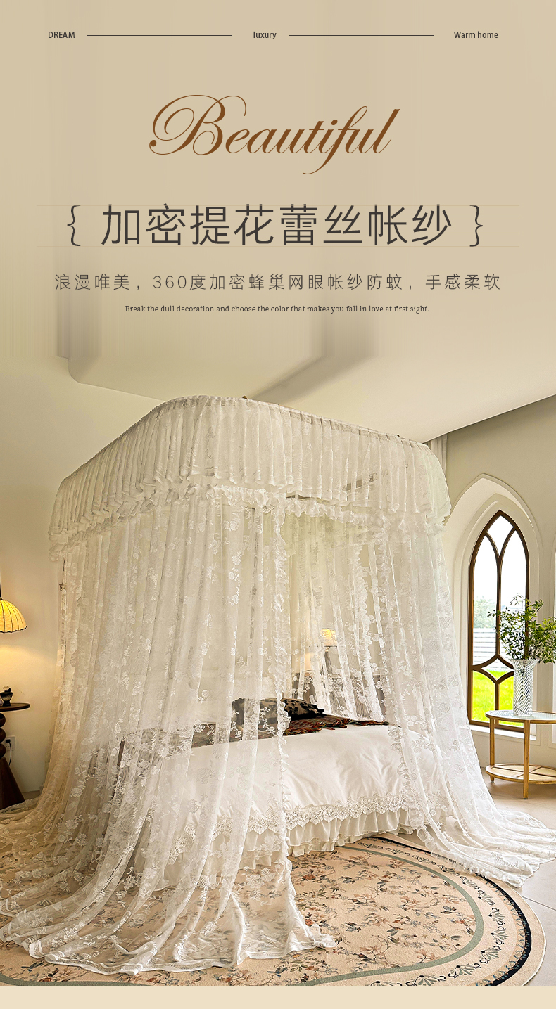 当前位置: 91家纺网 > 商品网购 > 床上用品 > 蚊帐 > 导轨蚊帐 > 都市缘蚊帐 2026新款303欧式浪漫导轨蕾丝提花蚊帐 303可可庄园-奶油白