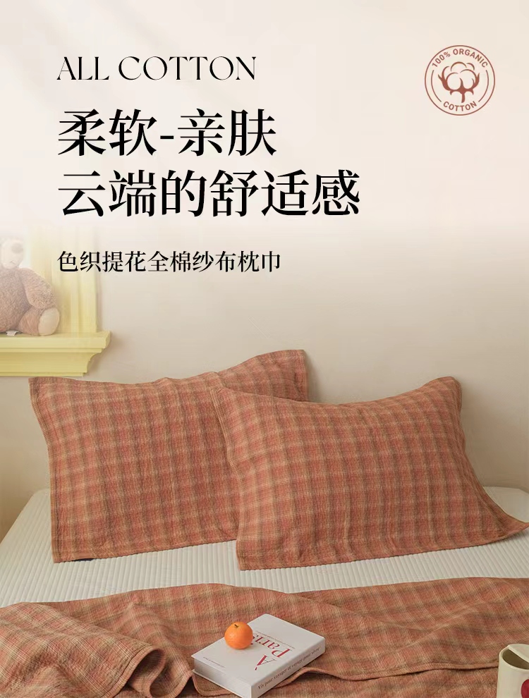 (总)沐瑟家纺 2025新款简约风多功能纱布盖毯纱布毯子毛巾被床盖沙发巾单毯枕巾枕套三件套,H本色,H橙色,H咖色,大马士革本色