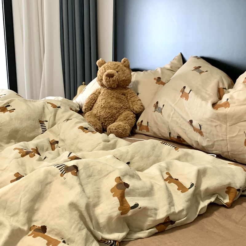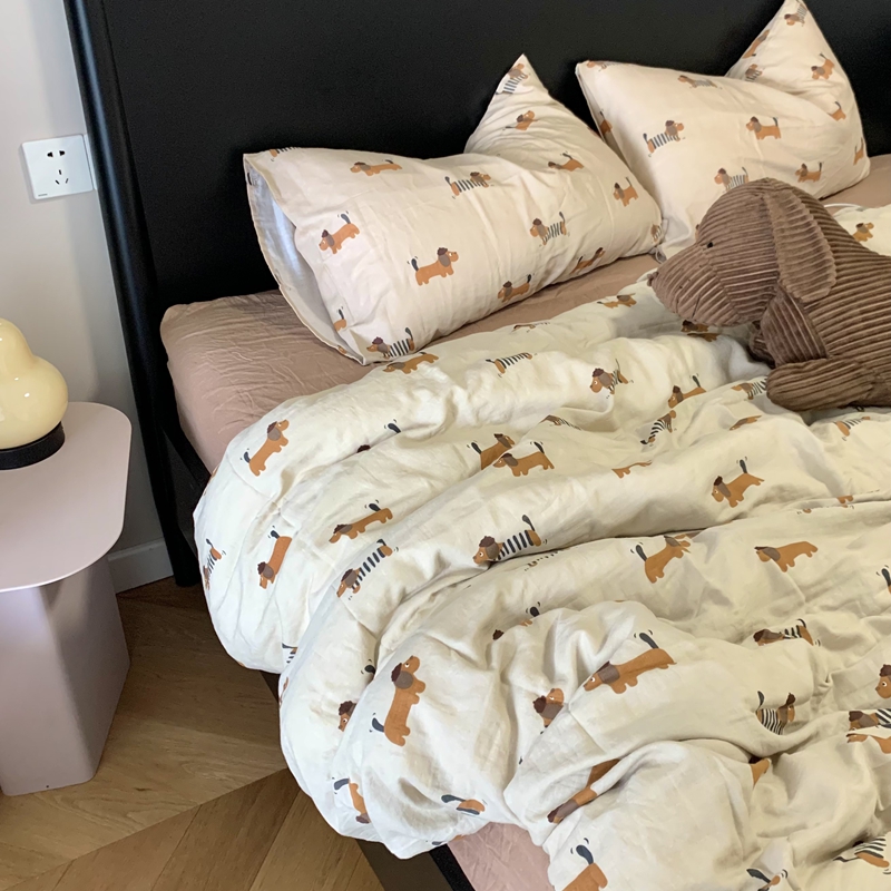 源启生活 2025新款A类全棉双层纱四件套 修修狗