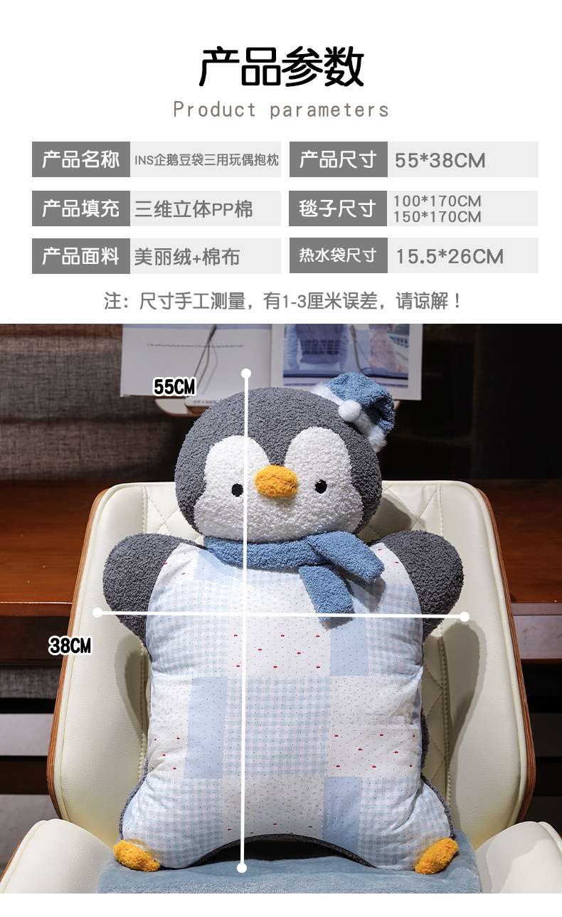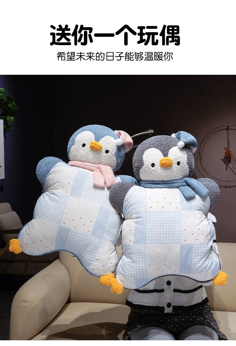 商品名称:仟亿莱 2025新款ins企鹅豆袋三用玩偶抱枕 三用蓝色企鹅-2