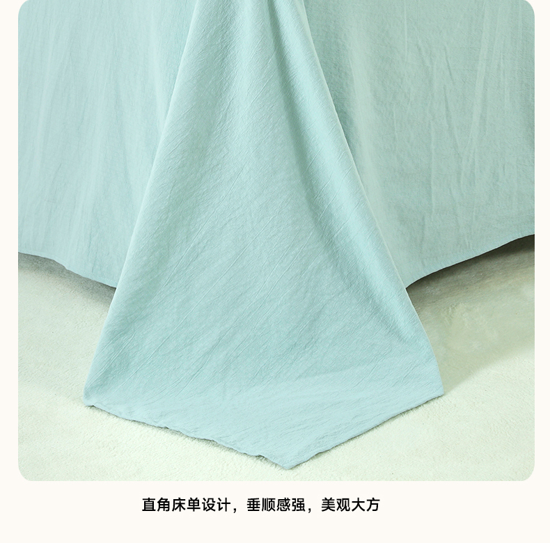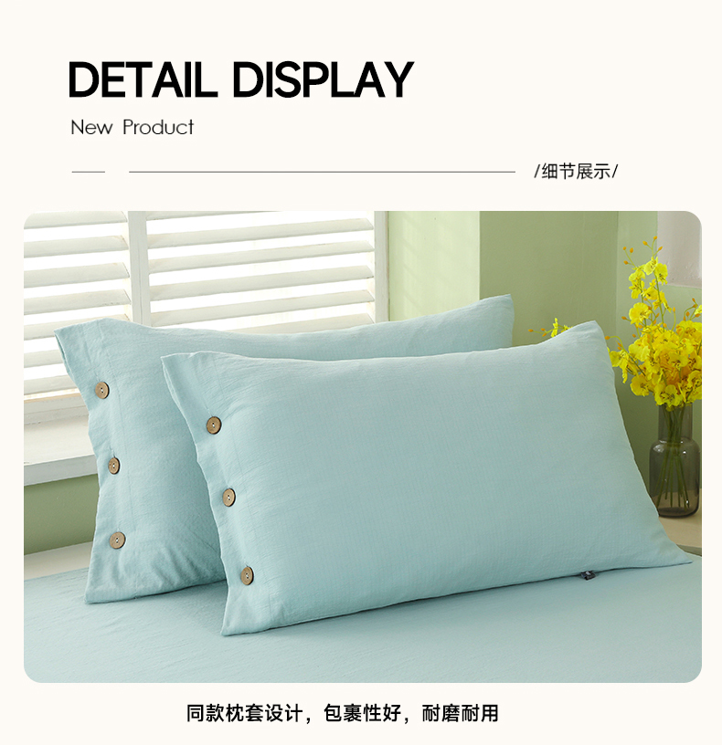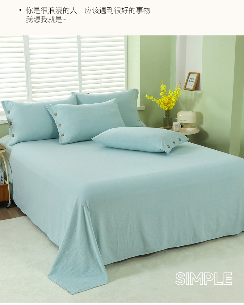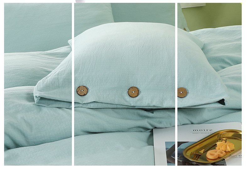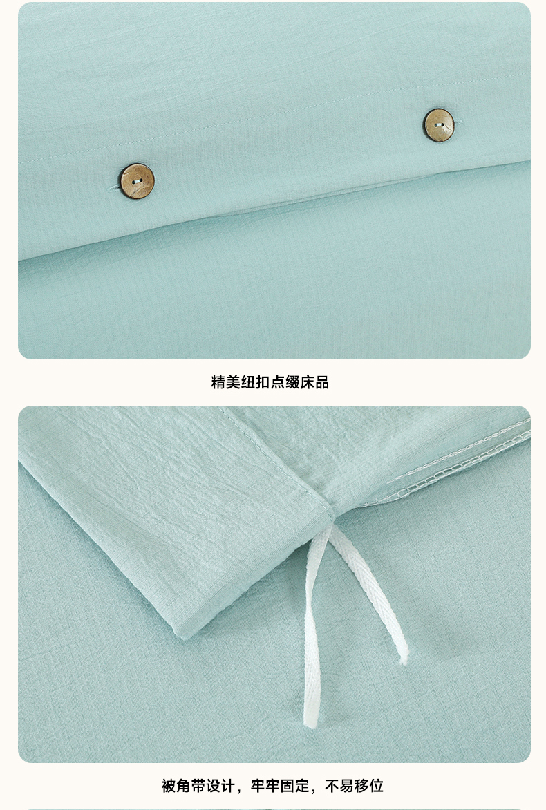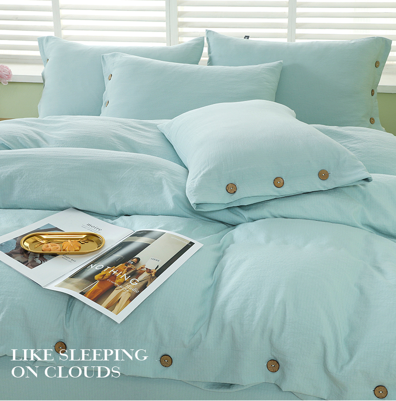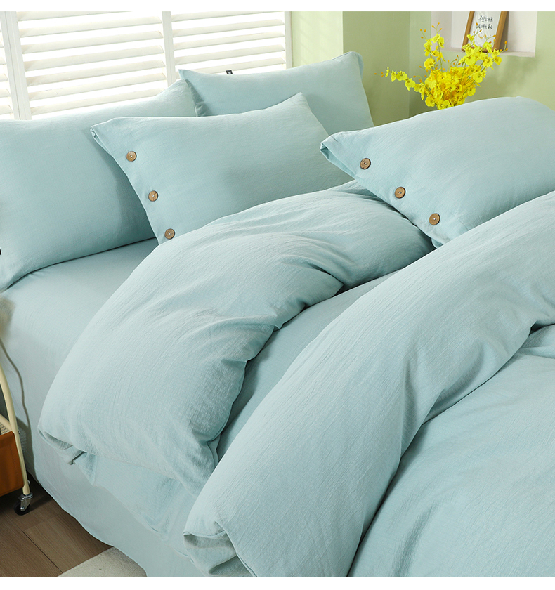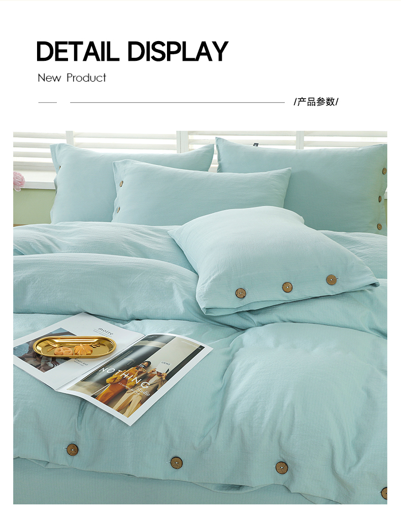 商品名称:博婷 2026新款水洗棉麻皱皱纱纽扣工艺款四件套 湖蓝