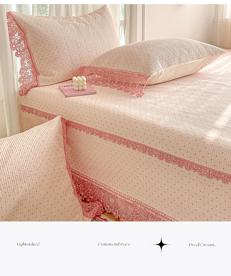 栩裕纺织 2026新款全棉双层纱棉花边榻榻米炕盖款 波点粉