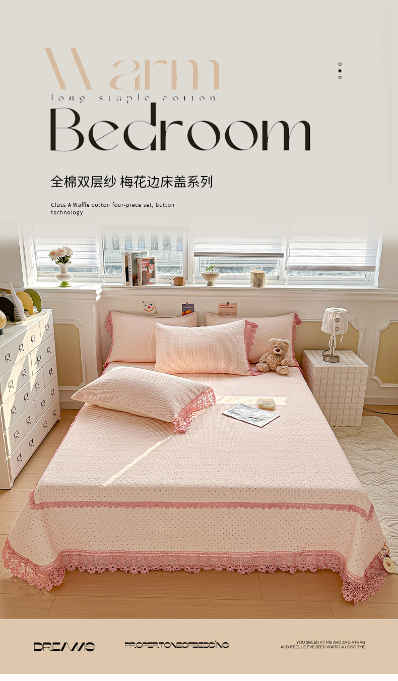 商品名称:(总)栩裕纺织 2026新款全棉双层纱梅花边床盖