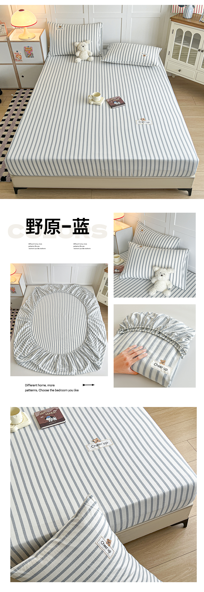 佳笠家居 2026年新款kimi熊a类全棉色织水洗棉大尺寸单床笠 野原-蓝