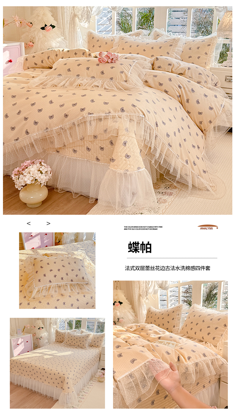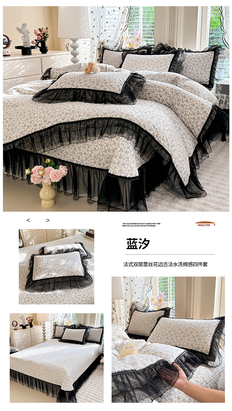 (总)韩约家纺 2026新款法式双层蕾丝花边古法棉感四件套