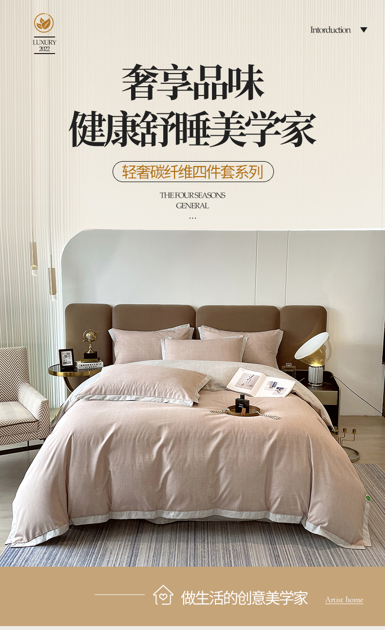 恩和家纺 2026新款森能量碳纤维环保四件套系列 碳卡绒-温玉