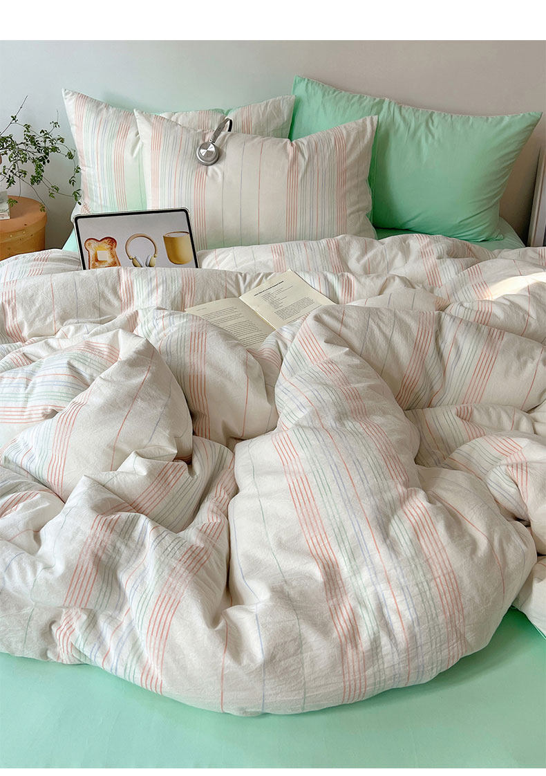 简宜家居(朝初家纺) 2026新款全棉色织小提花简纹系列四件套 简纹-薄荷绿