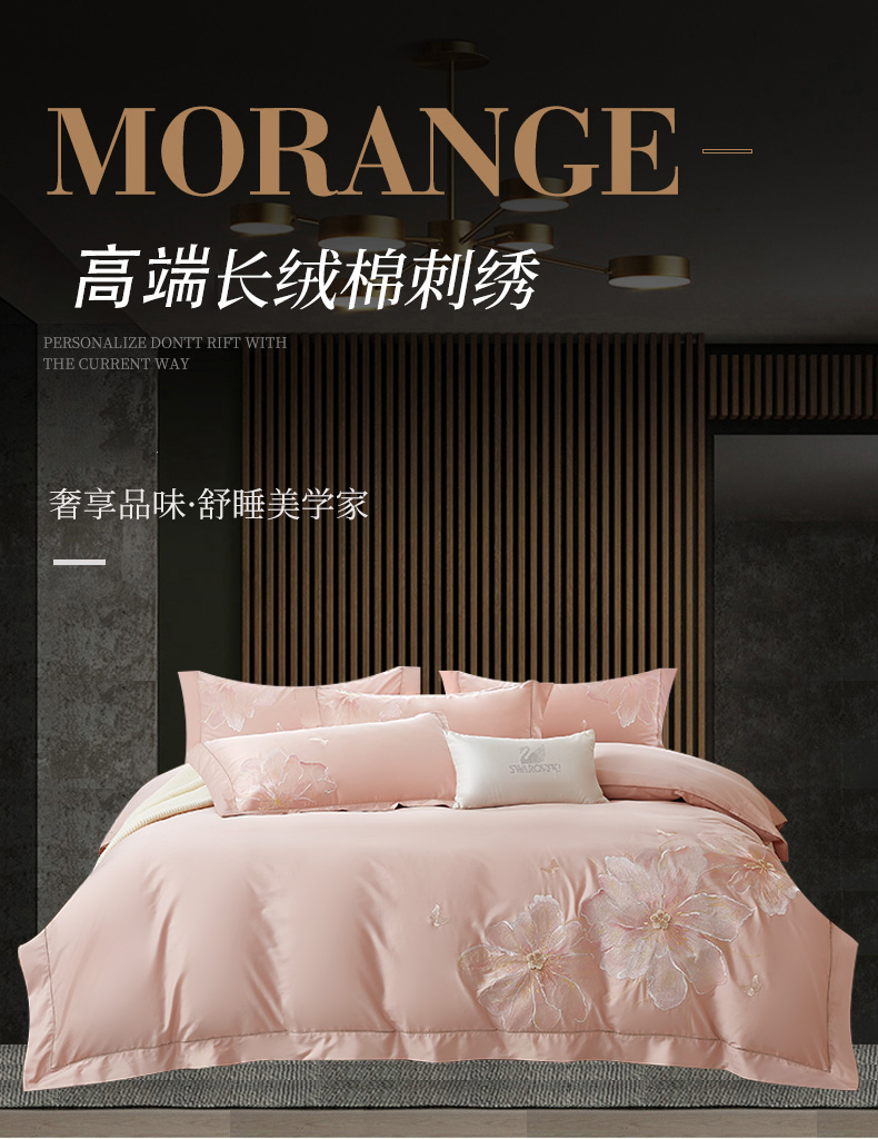 (总)诗黛尔 2025秋冬新款长绒棉刺绣风生水起系列四件套,风生水起-落樱粉,风生水起-南瓜橘,风生水起-绅士灰,风生水起-水晶兰,风生水起-香槟金,风生水起-油果绿