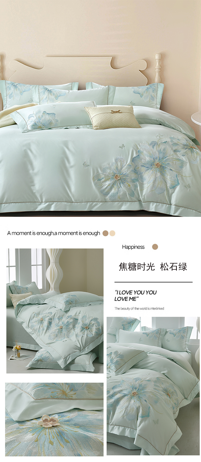 商品名称:诗黛尔 2026秋冬新款长绒棉刺绣焦糖时光系列四件套 焦糖时光(松石绿)