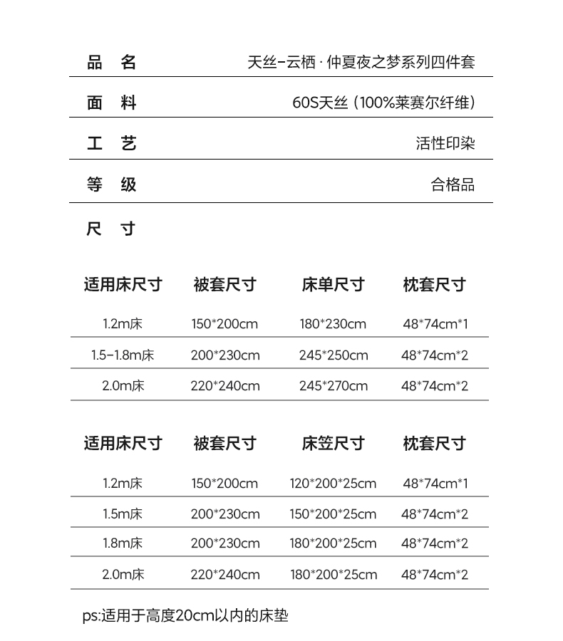 2.0m床单款四件套 | ¥172.00 |