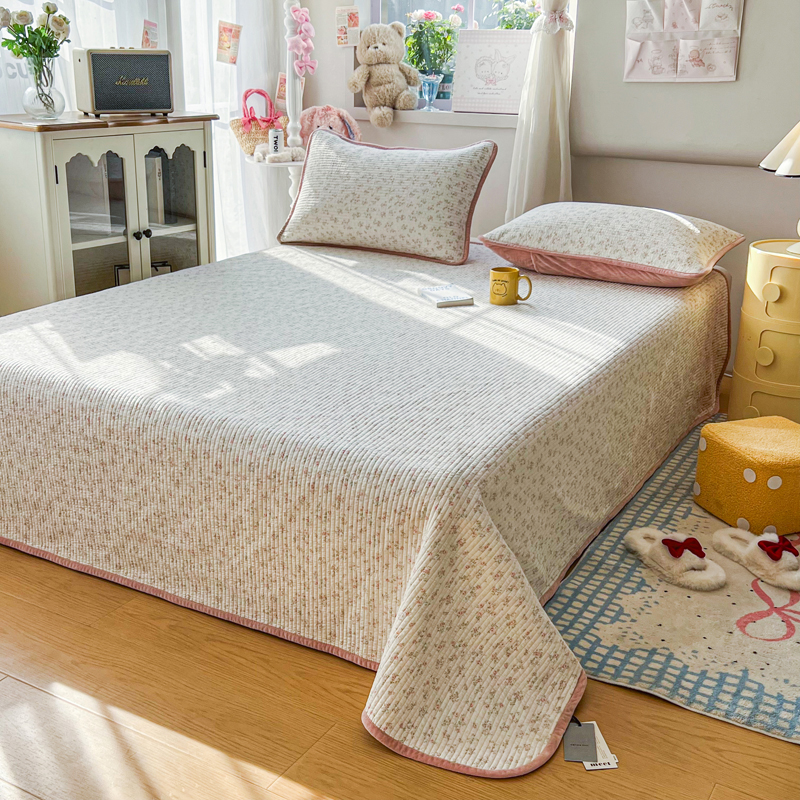 商品名称:欣宜家纺 2026新款全棉纱布加宝宝绒填充棉花床盖三件套 木槿