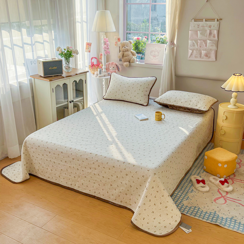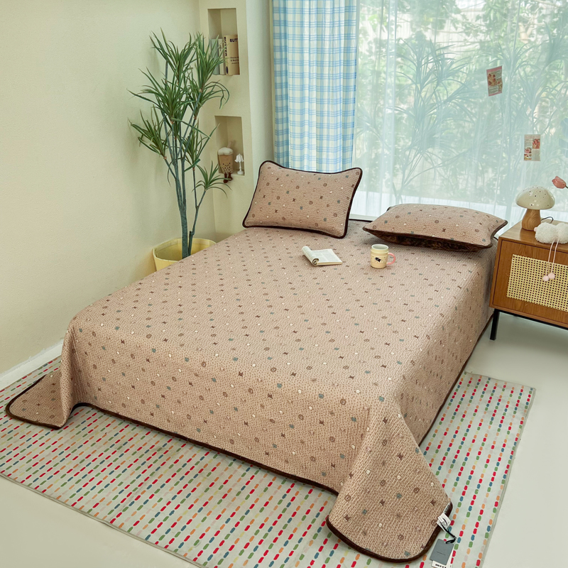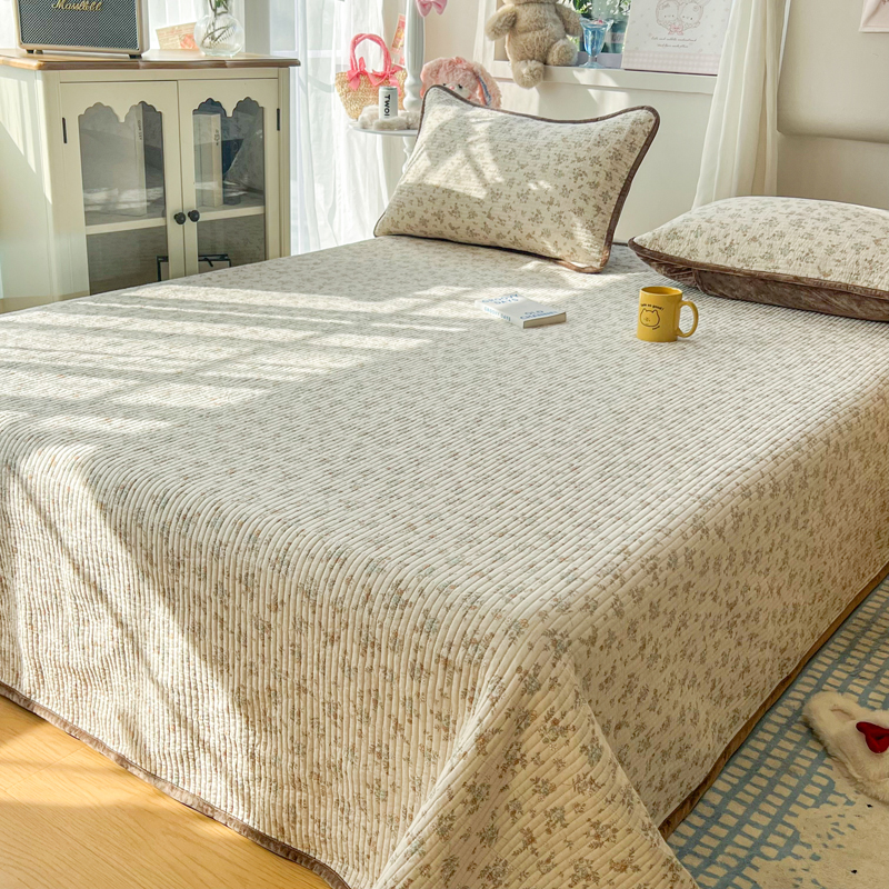 欣宜家纺 2026新款全棉纱布加宝宝绒填充棉花床盖三件套 秀雅