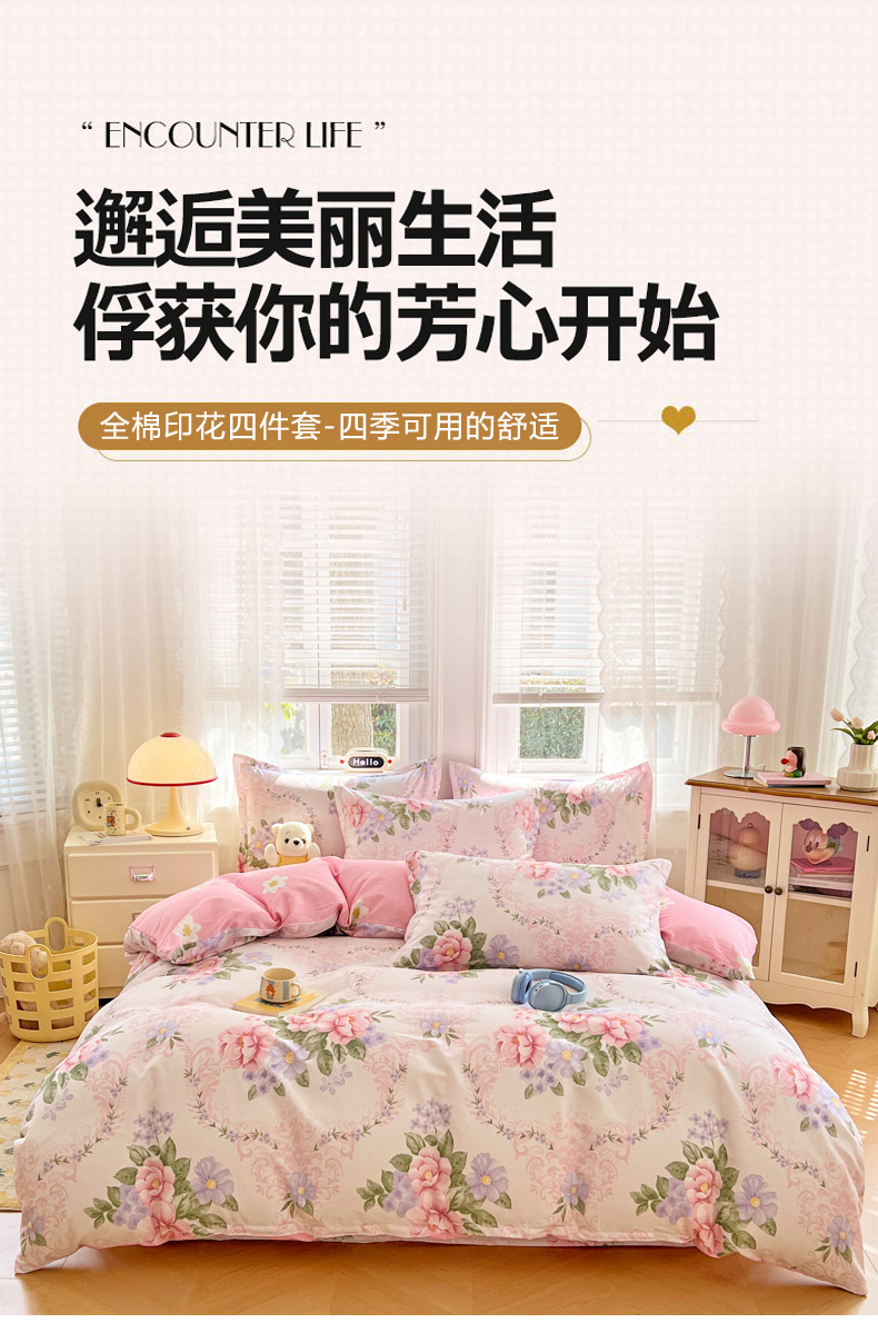 (总)世爵 2026春夏新款全棉纯棉印花小清新四件套,艾薇儿,海纳百川,度假时光,北欧映像,护花使者,布朗熊,风的印季,城南花开,花色伊人,花样年华,花叶倾城-粉,花叶倾城-蓝,花园兔,吉祥兔,可爱联盟,可爱萌宠,恐龙乐园,恐龙世界,漫步云端,梦里星光-灰,秘境熊宝,妙语花香,墨尔本,木棉花-绿,宁夏花苒,浓情玫瑰,盛夏晚晴,碎花拾影,天空之城,田园小兔,仙本娜,香草之恋,星空印记,尤里卡,宇宙小熊,竹林熊猫