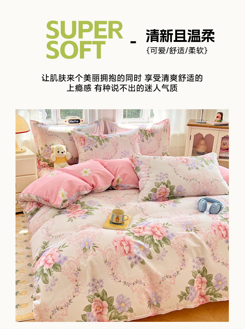 商品名称:世爵 2026春夏新款全棉纯棉印花小清新四件套 花叶倾城-粉