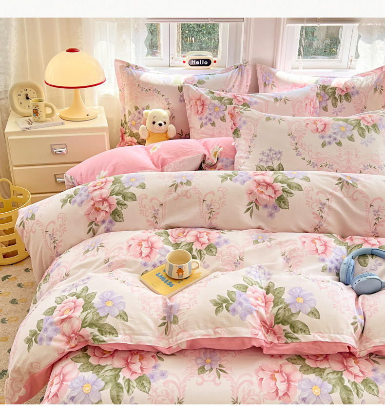 世爵 2026春夏新款全棉纯棉印花小清新四件套 花叶倾城-粉