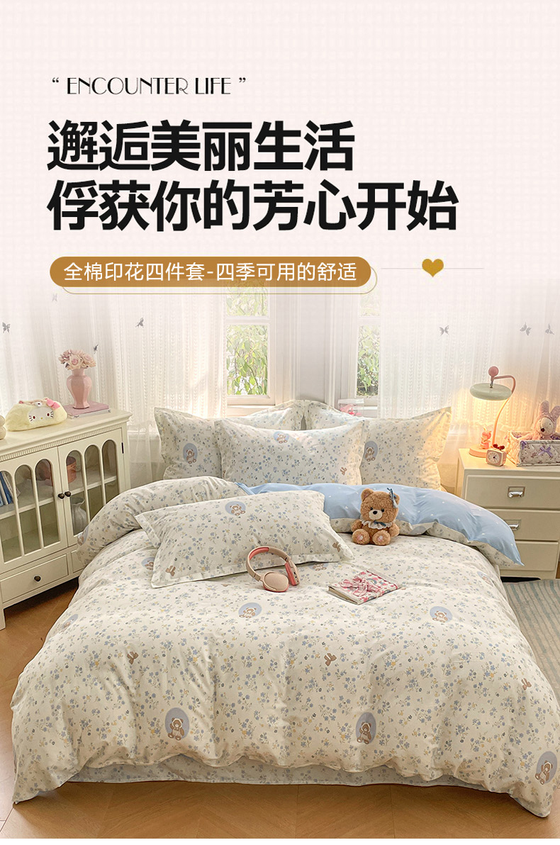 (总)世爵 2026春夏新款全棉纯棉印花小清新四件套,艾薇儿,海纳百川,度假时光,北欧映像,护花使者,布朗熊,风的印季,城南花开,花色伊人,花样年华,花叶倾城-粉,花叶倾城-蓝,花园兔,吉祥兔,可爱联盟,可爱萌宠,恐龙乐园,恐龙世界,漫步云端,梦里星光-灰,秘境熊宝,妙语花香,墨尔本,木棉花-绿,宁夏花苒,浓情玫瑰,盛夏晚晴,碎花拾影,天空之城,田园小兔,仙本娜,香草之恋,星空印记,尤里卡,宇宙小熊,竹林熊猫