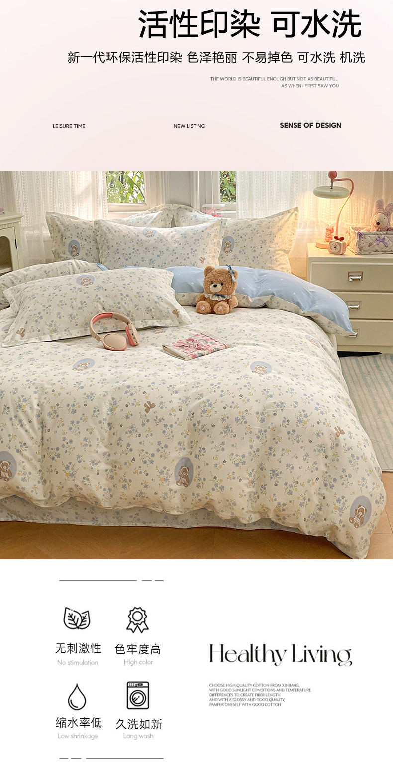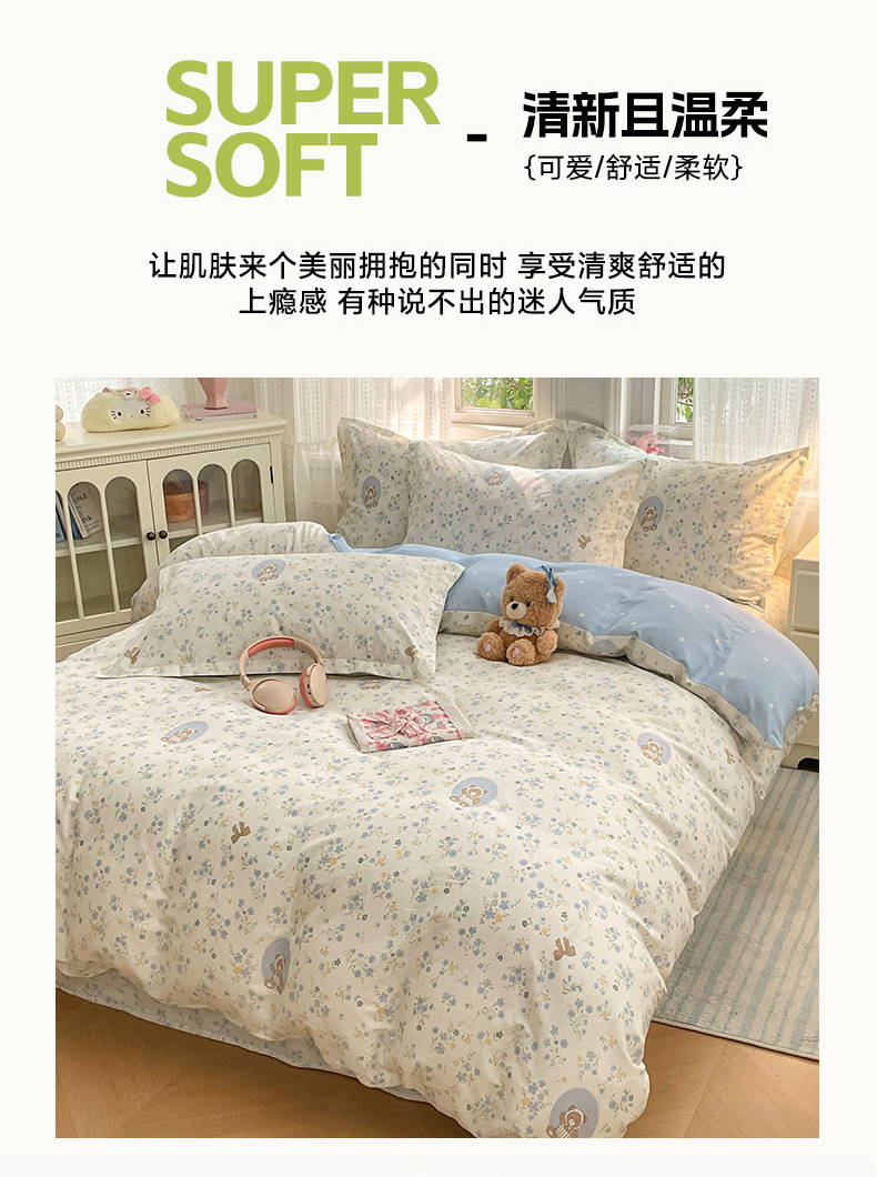 商品名称:世爵 2026春夏新款全棉纯棉印花小清新四件套 秘境熊宝