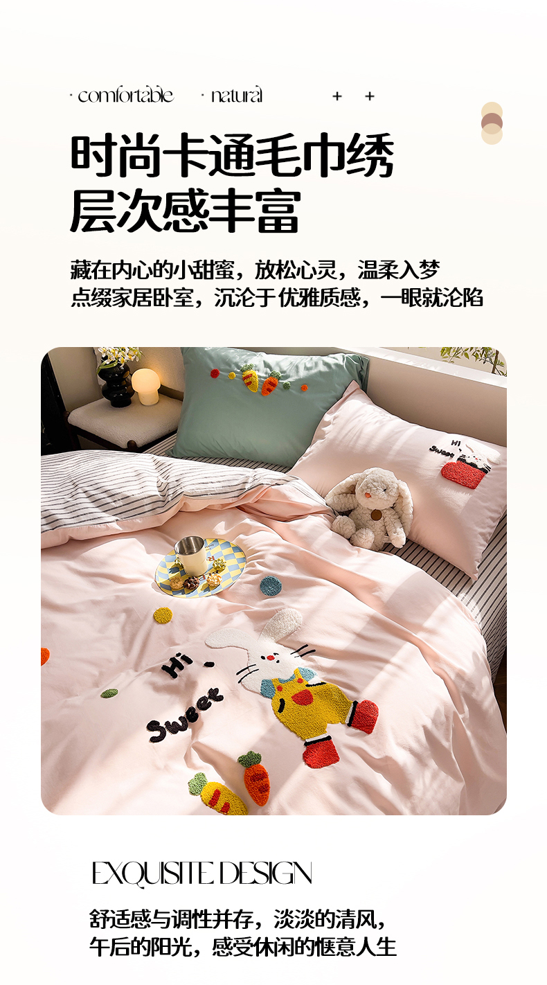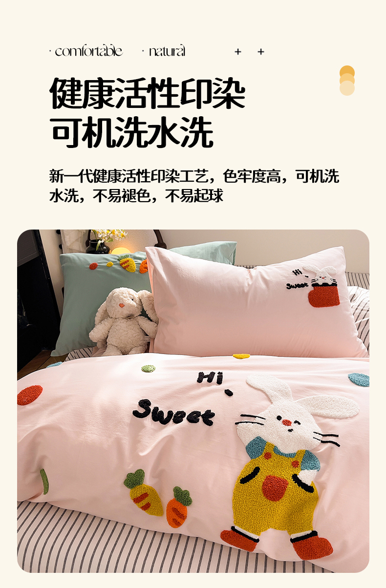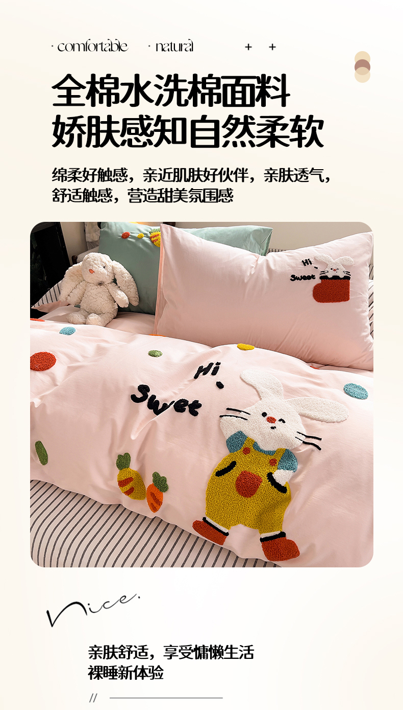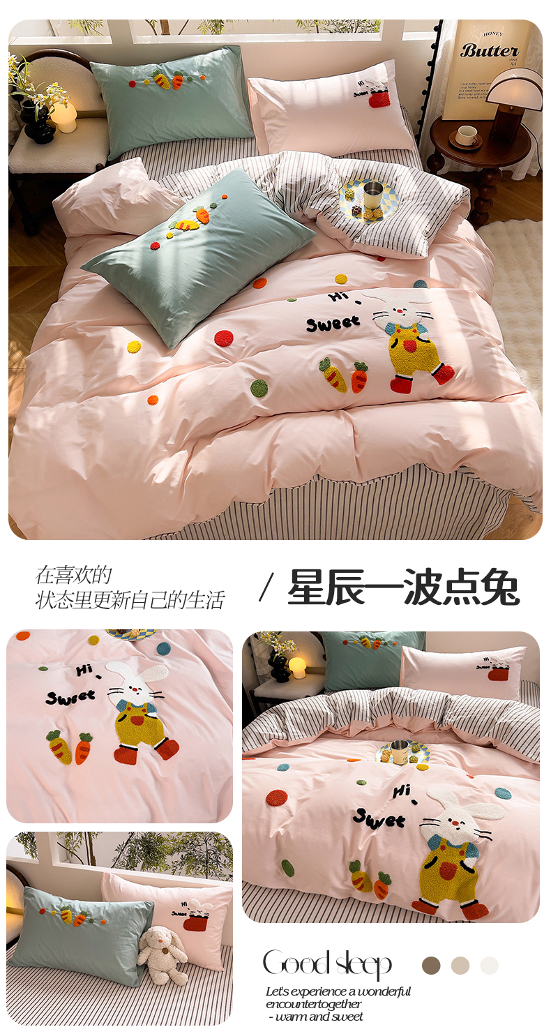 商品名称:炫拼家纺 2026新款卡通满版毛巾绣A类全棉40支水洗棉四件套-星辰系列 星辰-波点兔