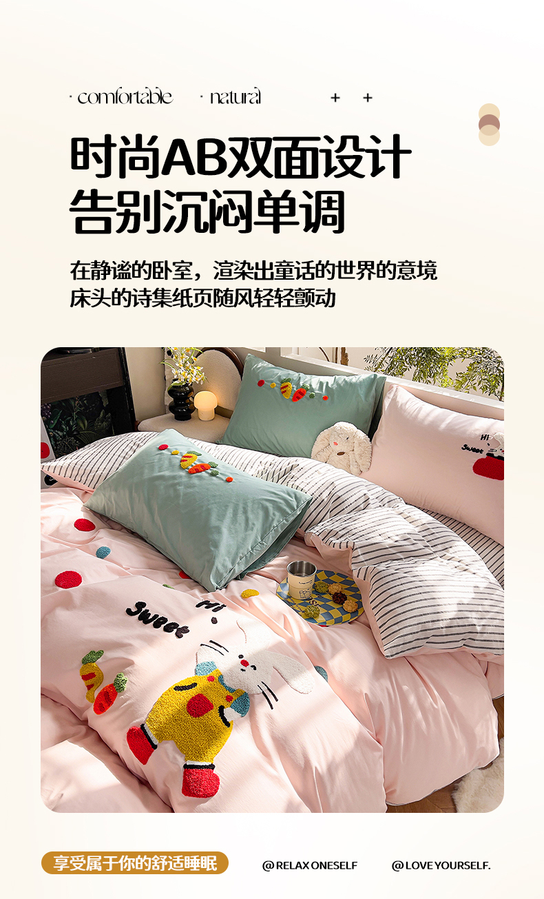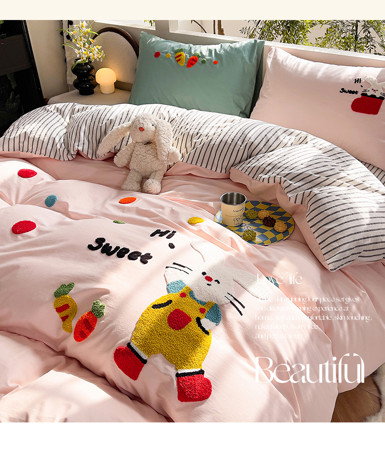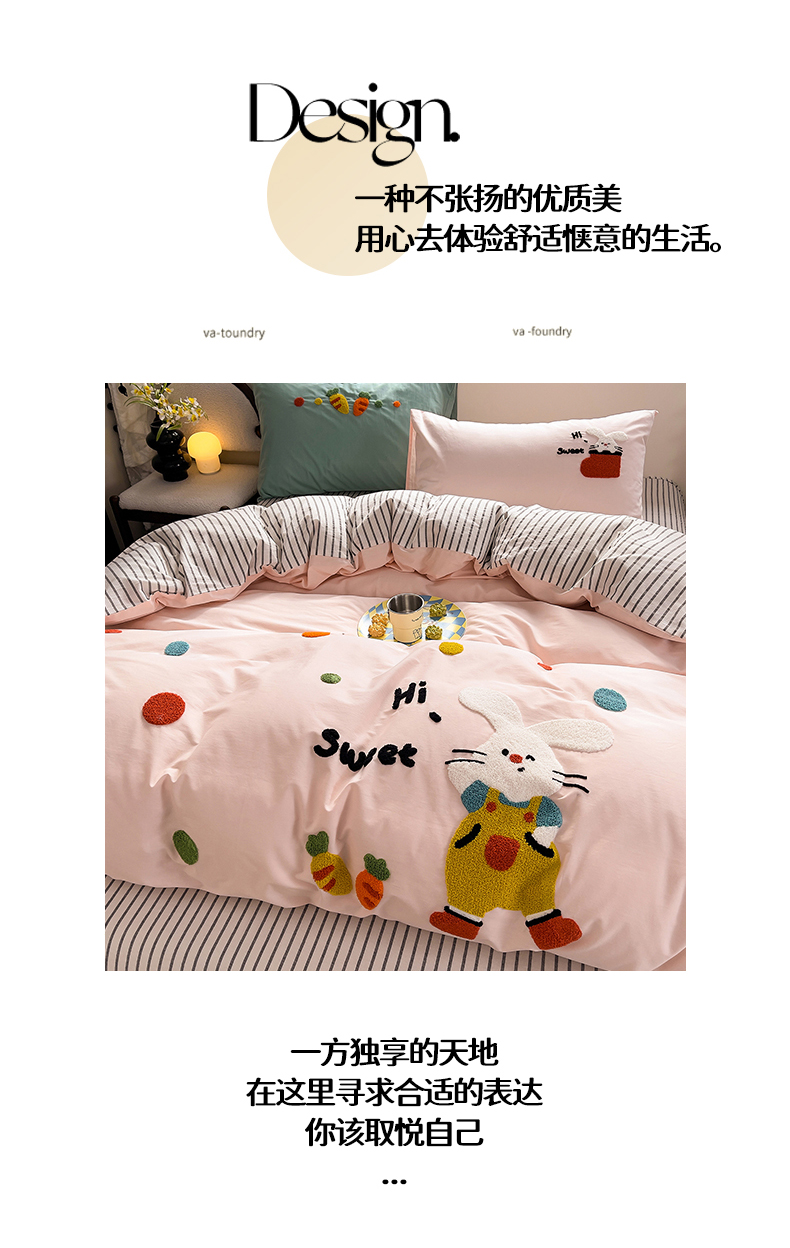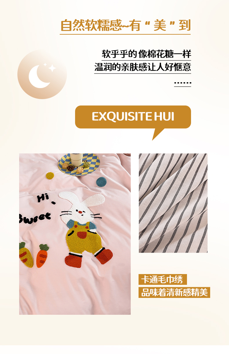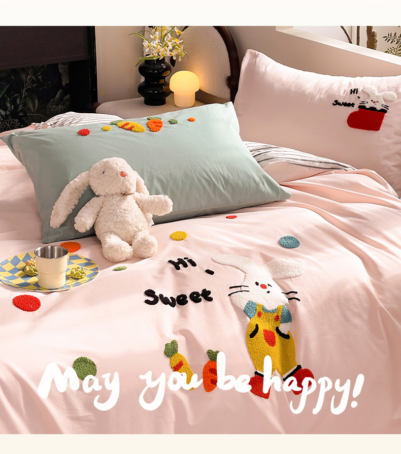 商品名称:炫拼家纺 2026新款卡通满版毛巾绣A类全棉40支水洗棉四件套-星辰系列 星辰-波点兔
