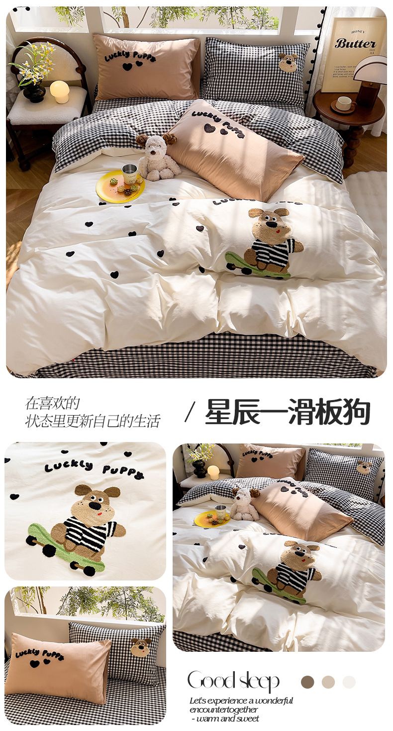 (总)炫拼家纺 2026新款多巴胺系列A类全棉40支水洗棉卡通毛巾绣四件套,多巴胺一咖啡猫,多巴胺-星星猫,多巴胺一彩色狗,多巴胺一小熊与狗,多巴胺-欢乐派对,多巴胺-小黑熊,多巴胺-面包熊,多巴胺-酷仔小树,多巴胺-美猴王,多巴胺-一起嗨,多巴胺-潦草小狗,多巴胺-快乐伙伴,多巴胺-惬意时光,多巴胺-快乐时光,多巴胺-No1