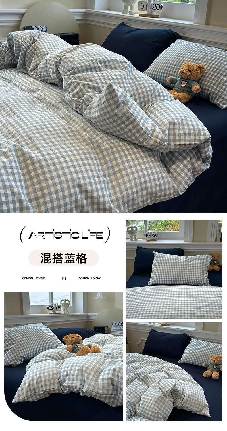 (总)欣晴家纺 2025新款软糯水洗棉条格无印宜家风混搭三件套四件套(风格1),混搭粉格,混搭灰条,混搭咖格,混搭咖条,混搭蓝格,混搭米黄,混搭米驼,混搭深灰