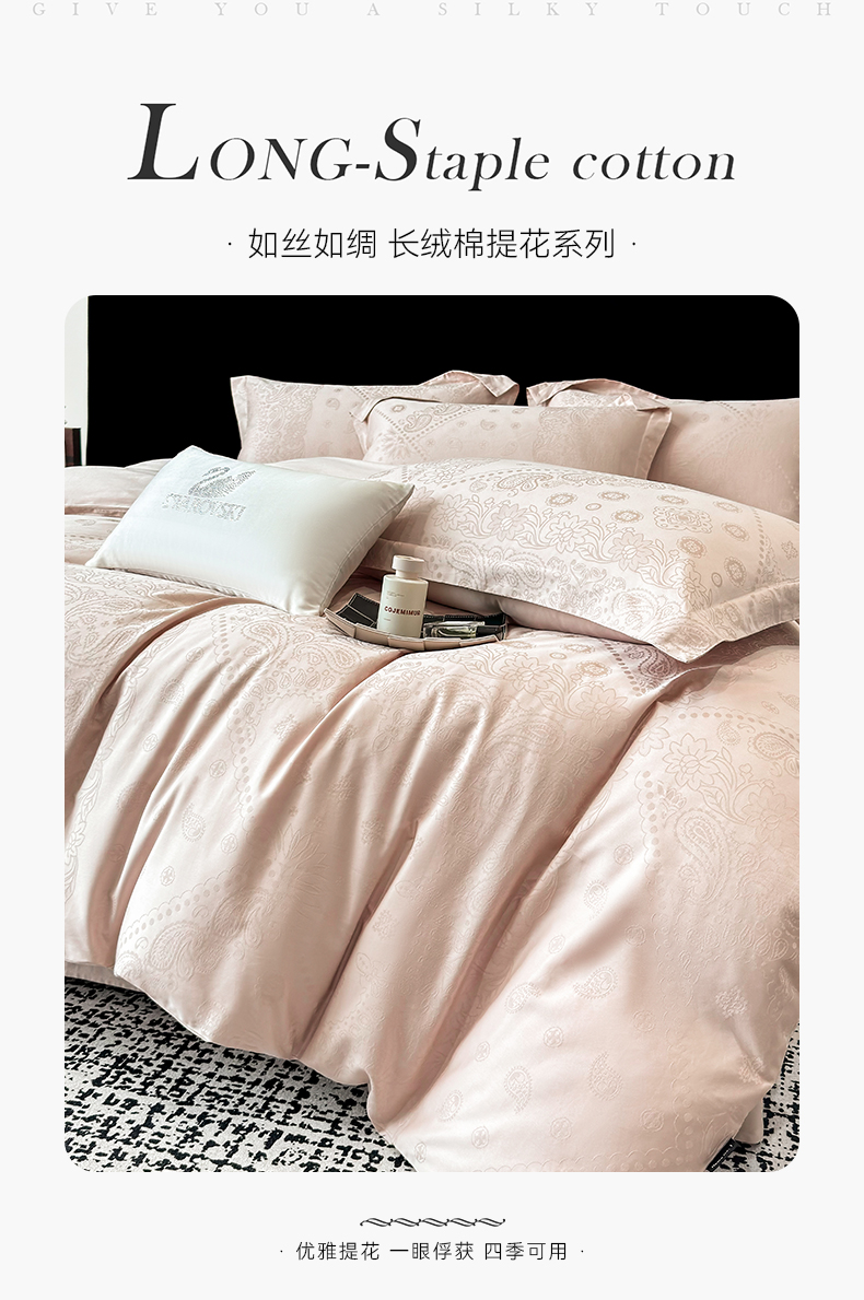 当前位置: 91家纺网 > 商品网购 > 床品套件 > 四件套 > 长绒棉四件套 > 家居1号家纺 2026春夏新款50双股长绒棉全棉纯棉提花四件套-费罗德【控价券后价格不得低于:标准269元,加大289元!会员优惠10元!】 费罗德-奶昔白