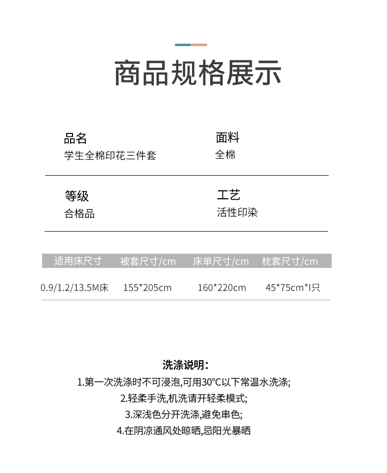 商品名称:(总)朵希曼 2026新款全棉印花学生三件套系列