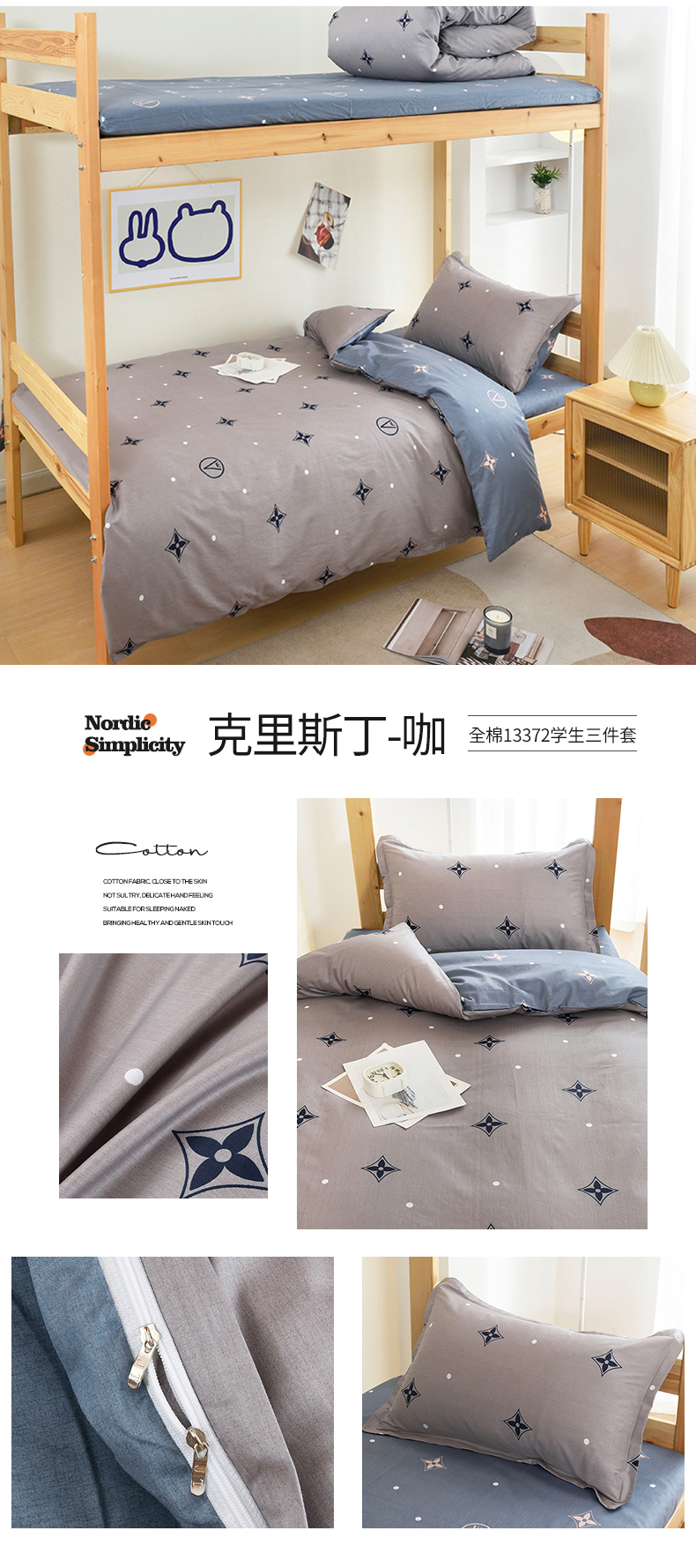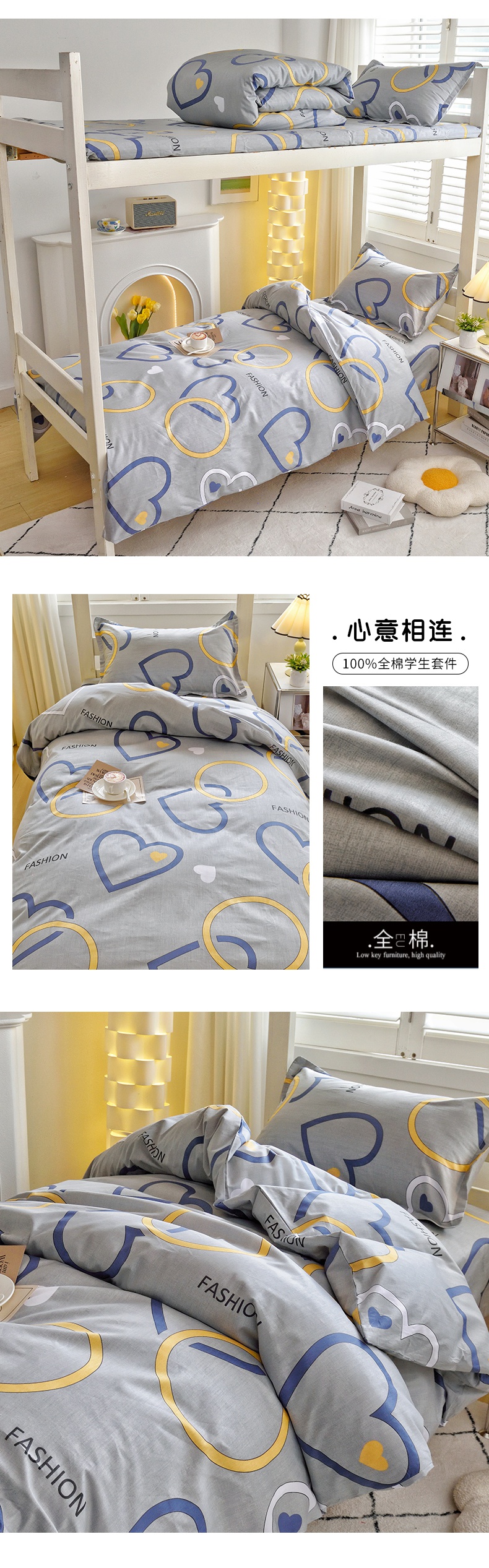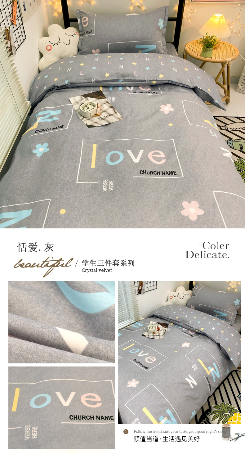 (总)朵希曼 2026新款全棉13372学生三件套系列,爱的萌牛,艾伦-粉,伯爵-灰,都市柔情,方格时代,芳菲,芳华,风尚-灰,风尚-蓝,海豚-粉,海豚-蓝,几何空间,简美,乐章,墨尔本,品尚,轻居,心语,心悦,幸运星-蓝,怡然,英伦,月羽,LOVE