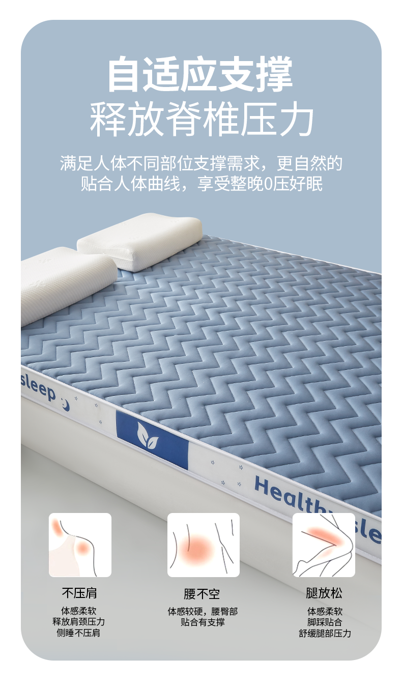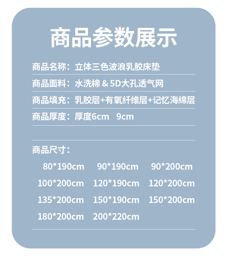 当前位置: 91家纺网 > 商品网购 > 床垫/床褥 > 普通床垫 > 月茶家纺 2026新款立体三色波浪乳胶海绵床垫 蓝色6cm