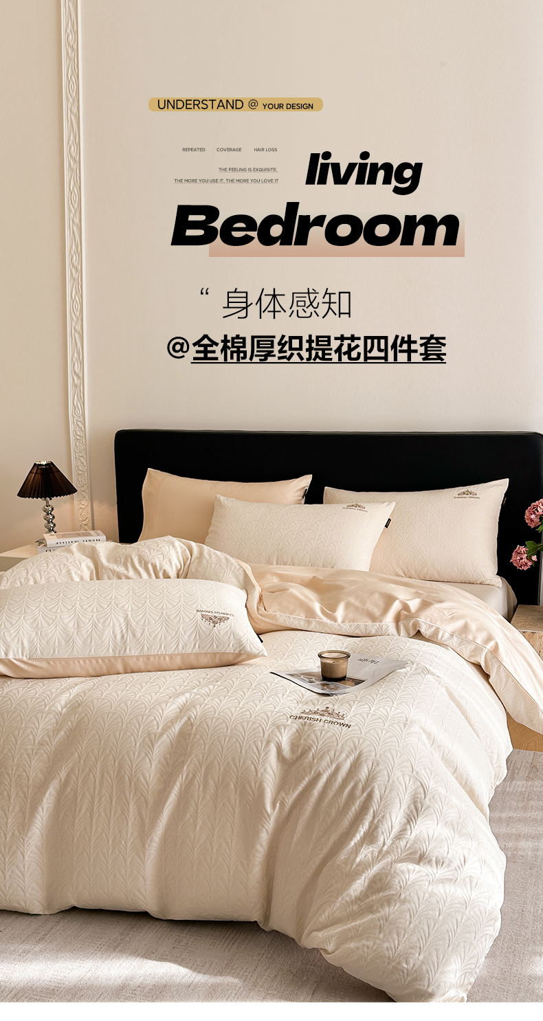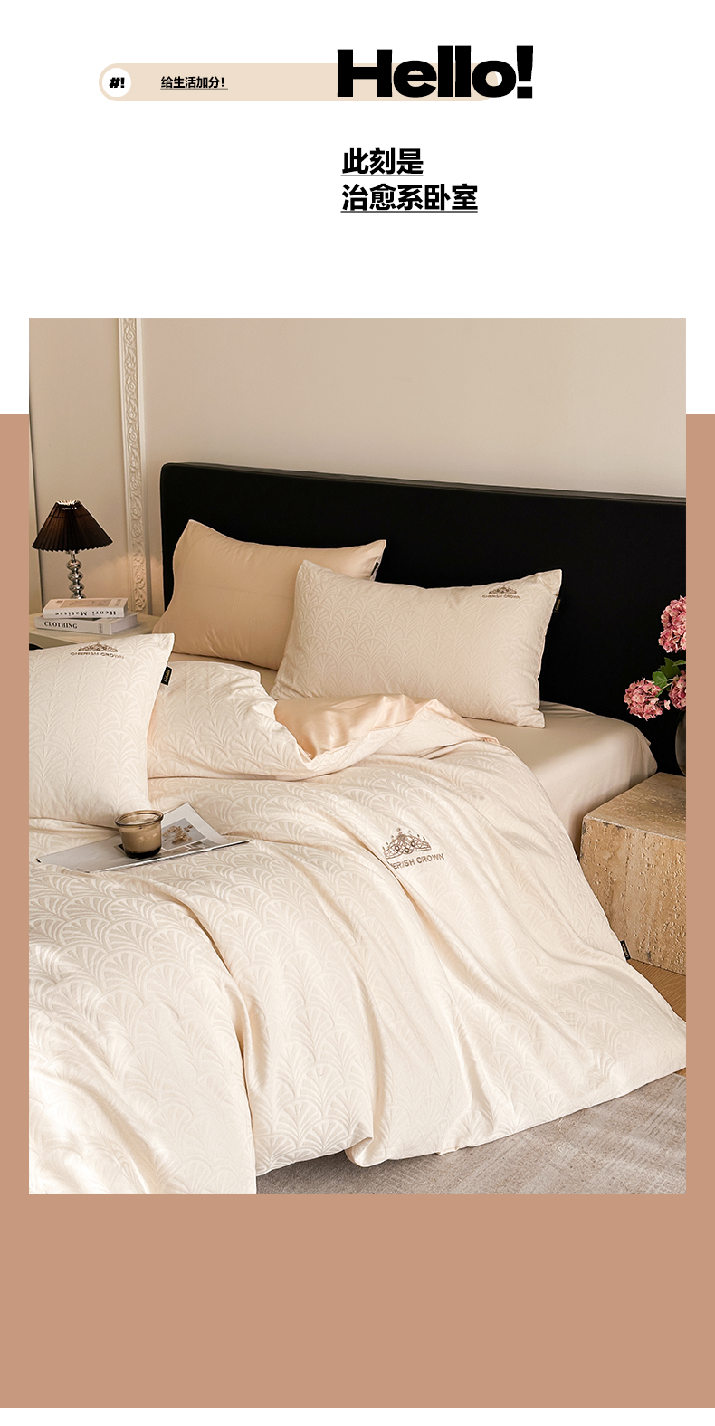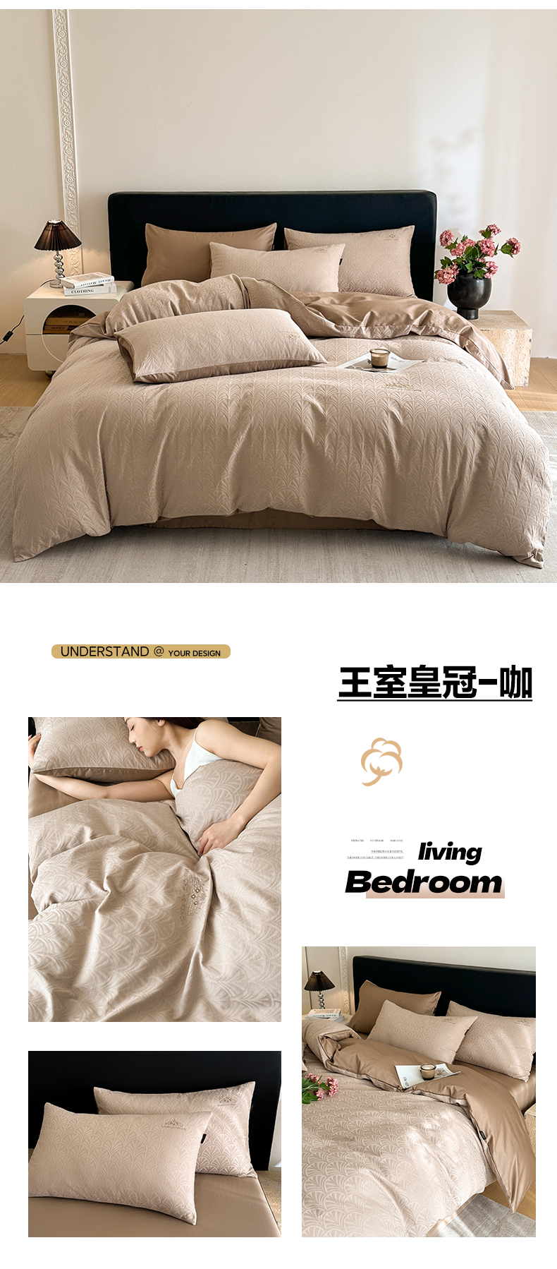 当前位置: 91家纺网 > 商品网购 > 床品套件 > 四件套 > 全棉普通四件套 > 卡巴伦家纺 2026新款全棉纯棉厚织提花四件套 王室皇冠-米杏