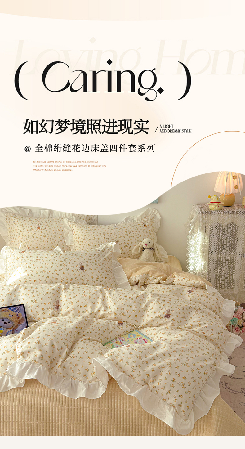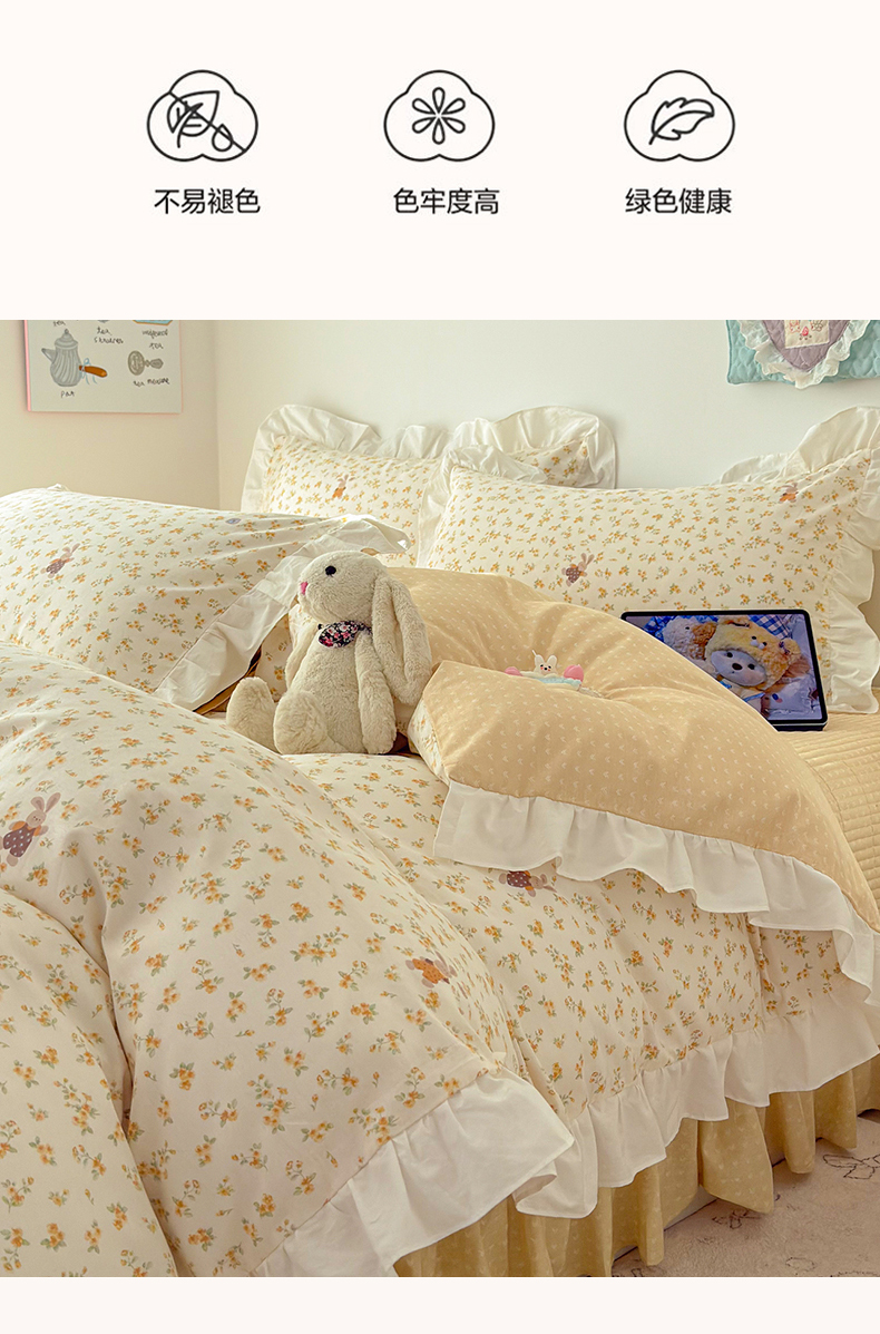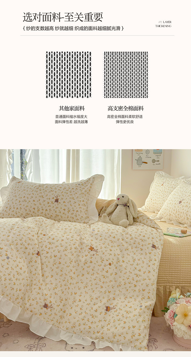 当前位置: 91家纺网 > 商品网购 > 床品套件 > 四件套 > 全棉普通四件套 > 简宜家居(朝初家纺) 2026新款全棉绗缝花边床盖四件套 暖菊花兔