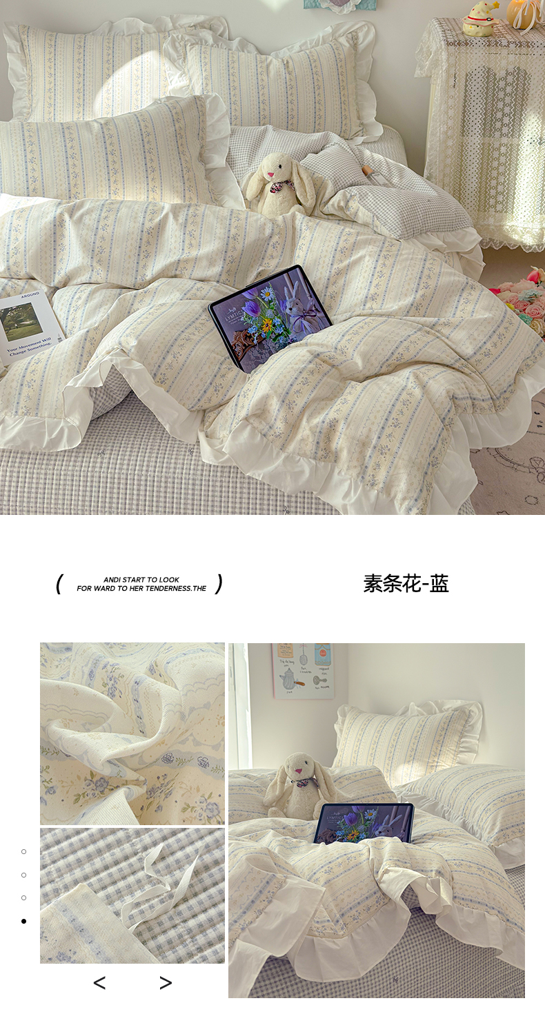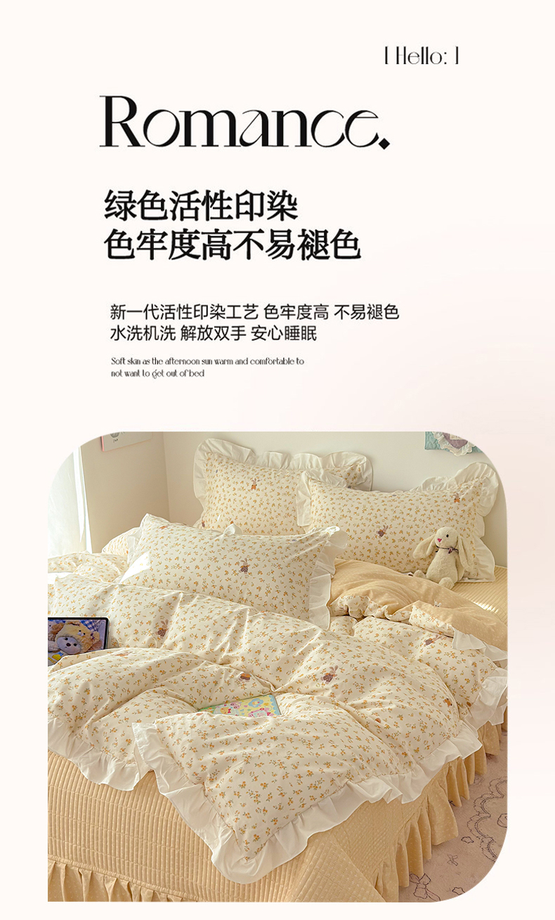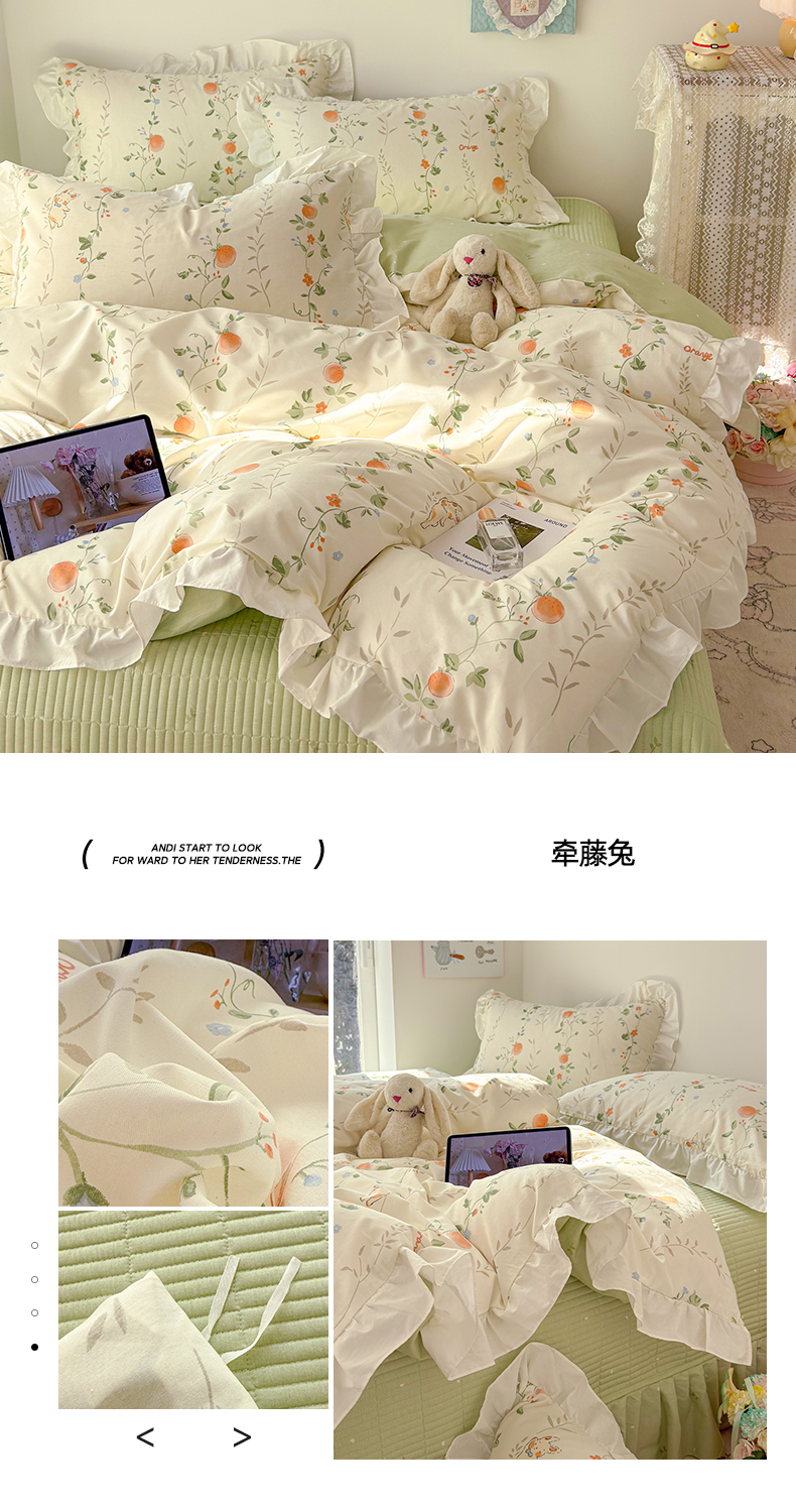 当前位置: 91家纺网 > 商品网购 > 床品套件 > 四件套 > 全棉普通四件套 > 简宜家居(朝初家纺) 2026新款全棉绗缝花边床盖四件套 暖菊花兔